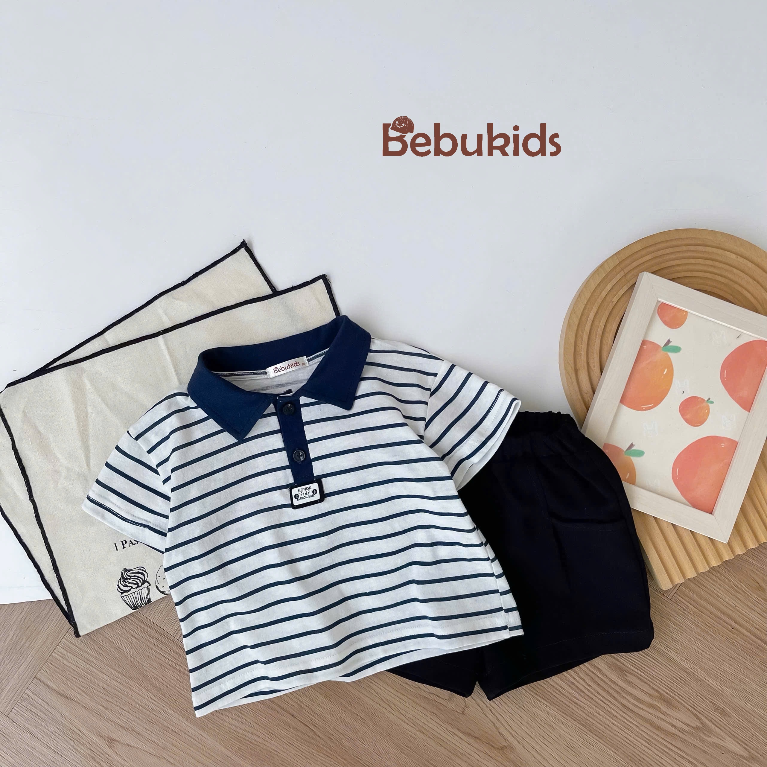 Áo cộc tay phối viền cổ in thỏ, lơn, cá, gấu