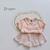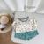 SB2288- bộ cộc tay bé gái cổ zen, in họa tiết thân trước, quần phối beò gấu