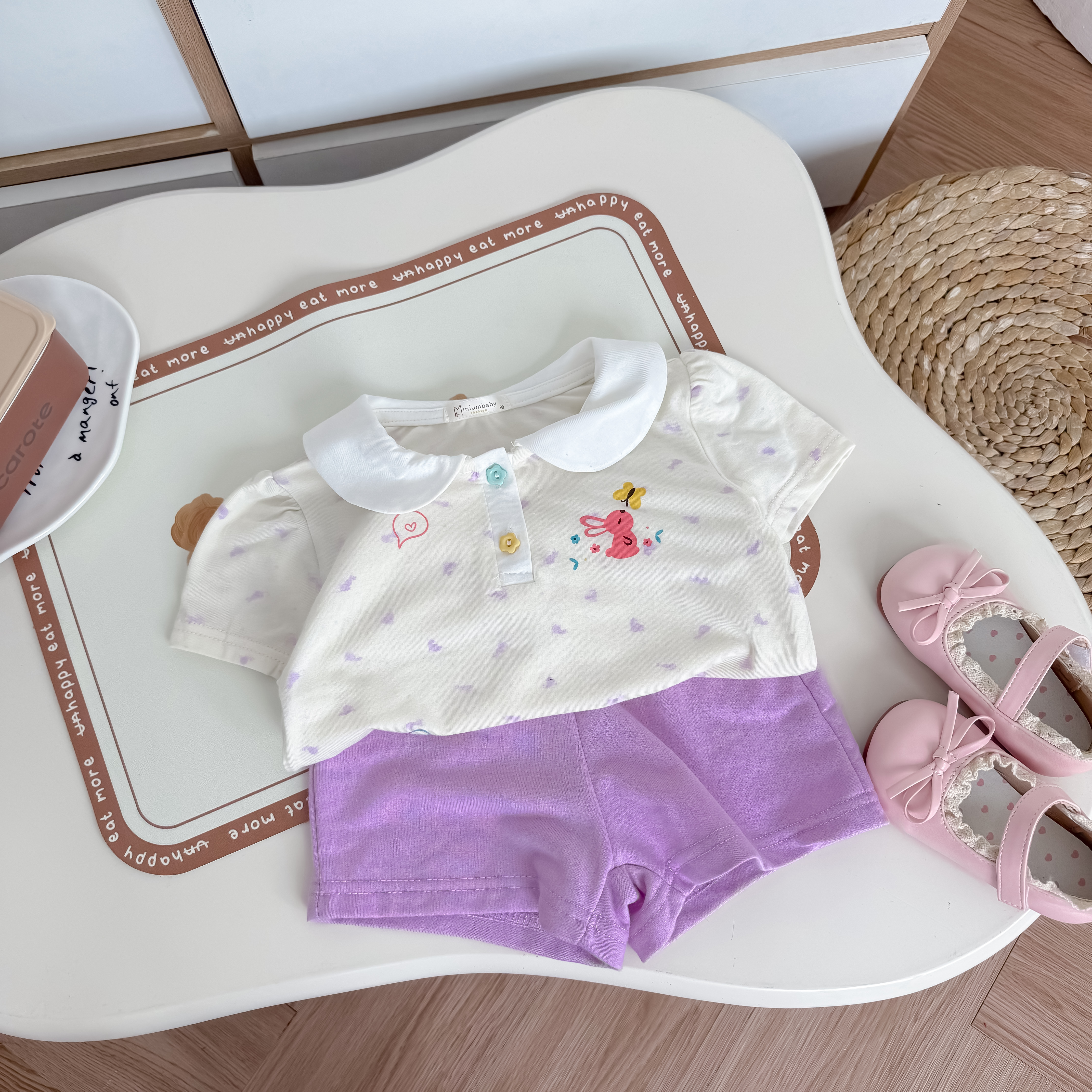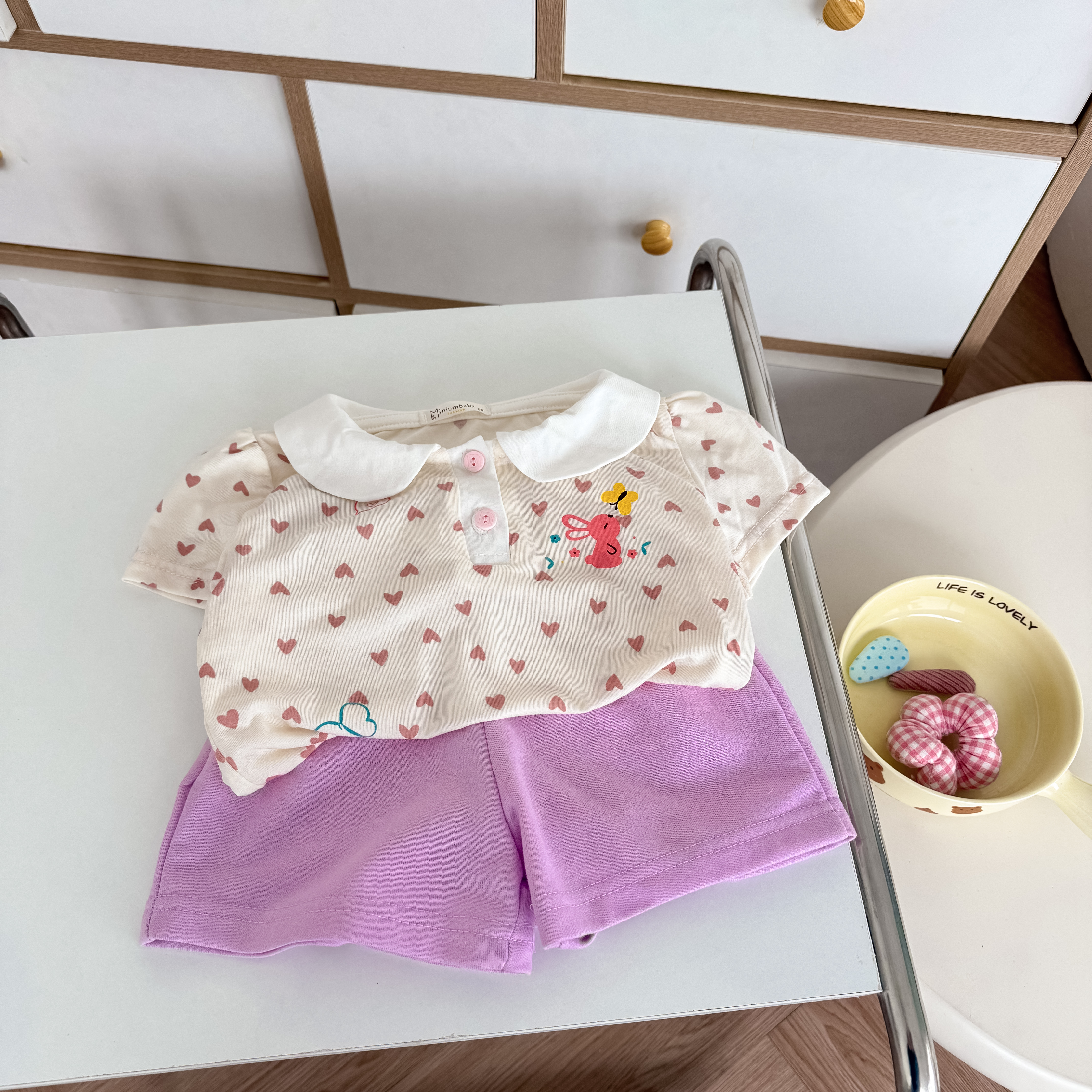 Bộ cộc quần đùi bé gái có cổ