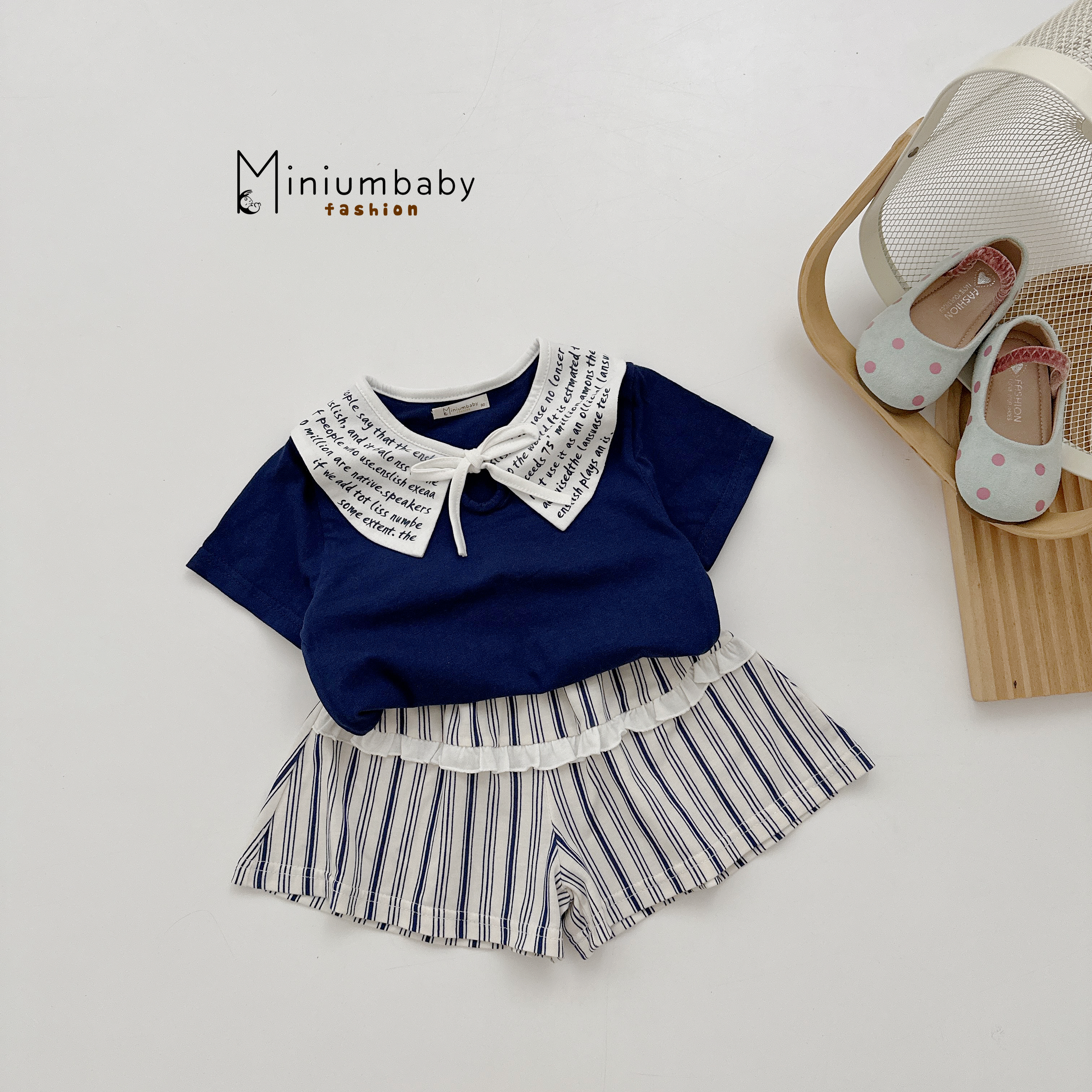 Bộ cộc cổ bèo túi ngực đính nơ