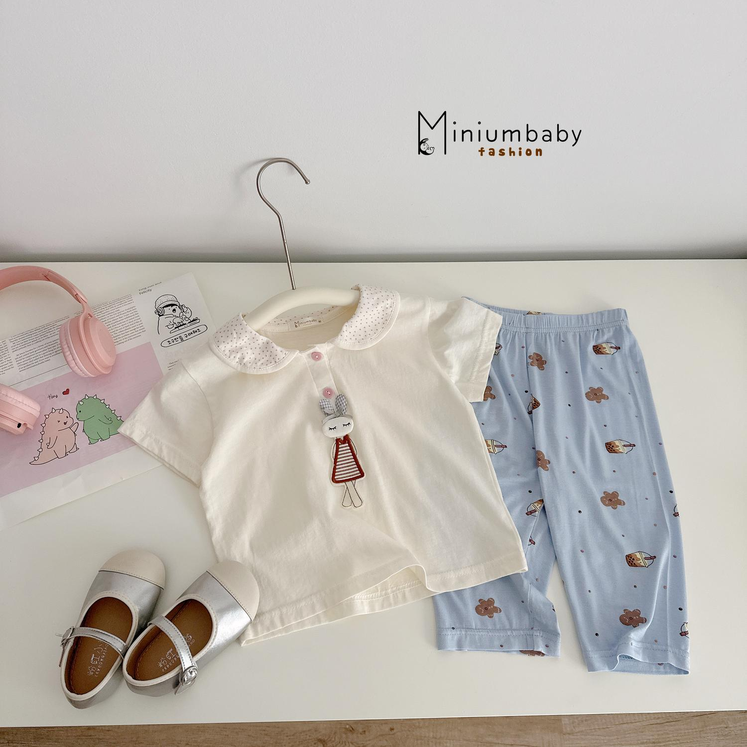 Bộ cổ sen đính bé gái quần trà sữa