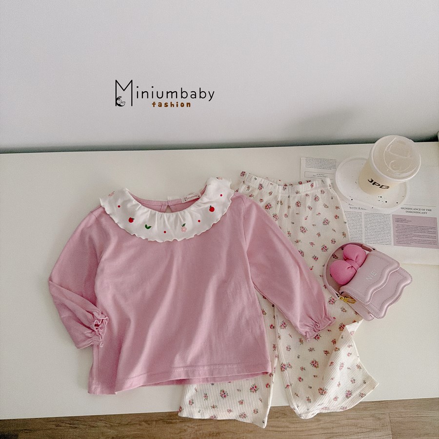 Bộ dài tay cổ bèo in hoa quả, tay bo gấu phối quần hoa