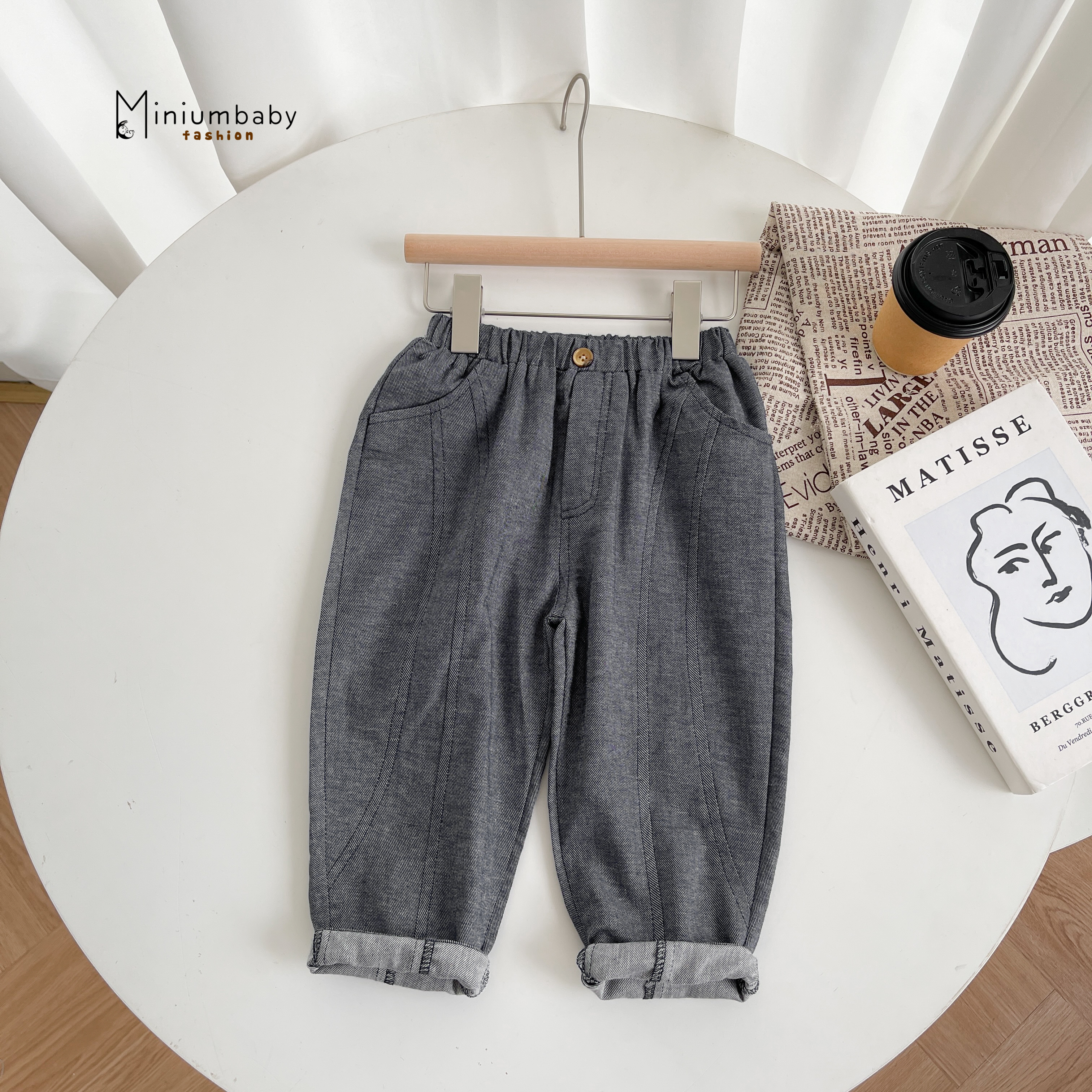 QD2141- quần dài bèo gấu phối ren đính nơ, cúc hoa