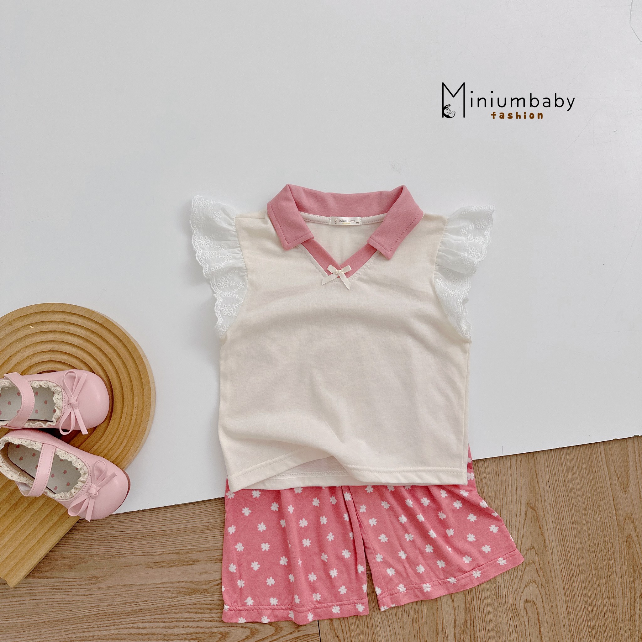 SB2319- bộ sát nách họa tiết , quần đùi phối ren gấu