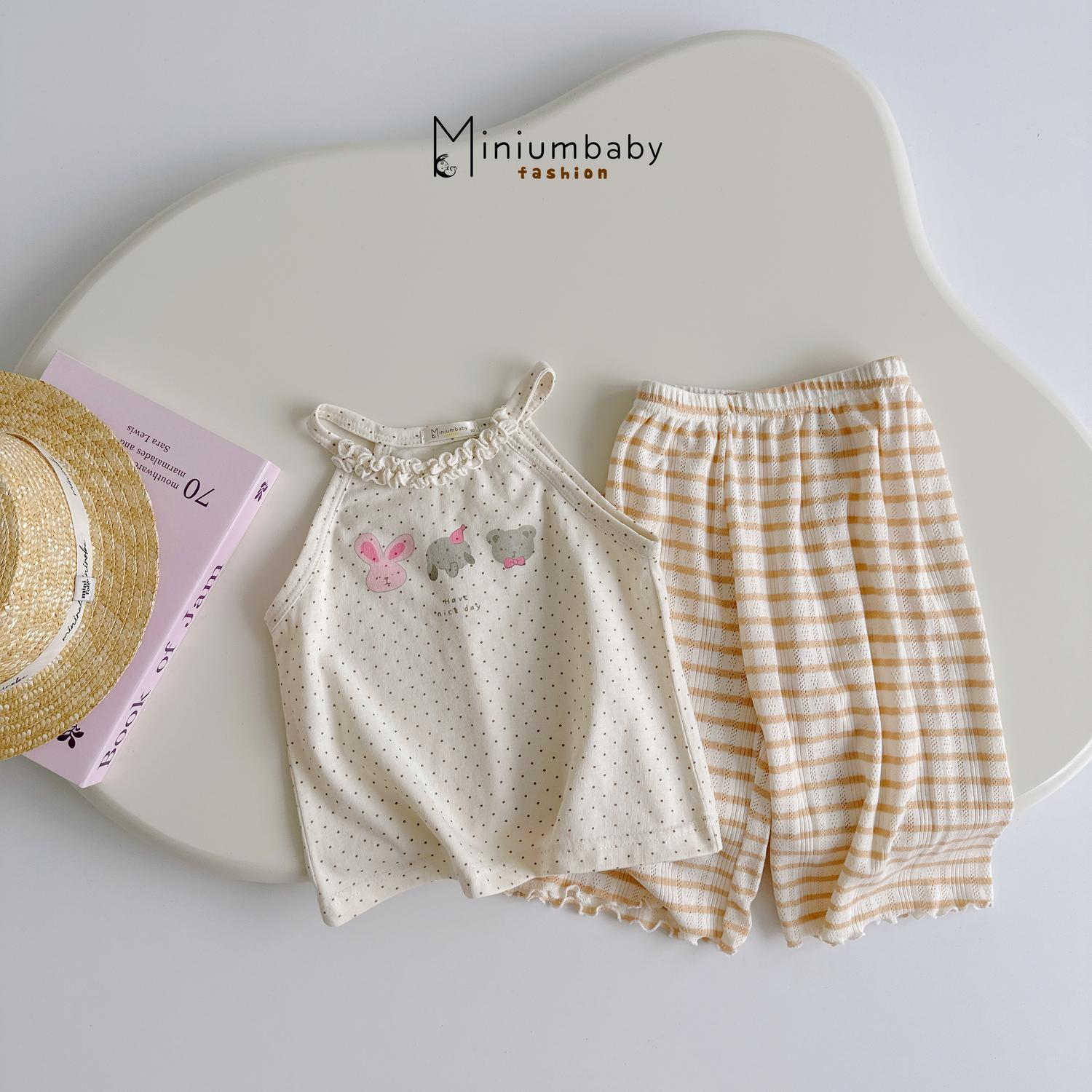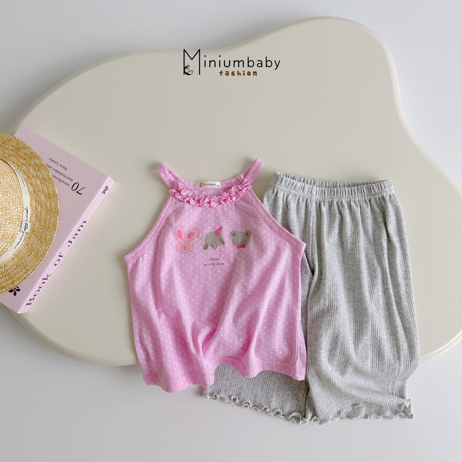 Bộ cổ yếm bé gái chấm bi in thỏ, voi, gấu