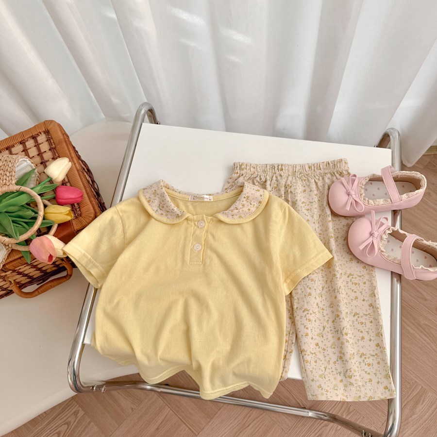 Bộ cộc quần lỡ bé gái có cổ
