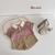 SB1983-bộ cộc tay cổ vuông đính nơ nẹp thân trước phối quần hoa