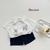 SB2265- bộ cộc phối cổ, 1 bên sườn tay áo, in chữ every thing is....