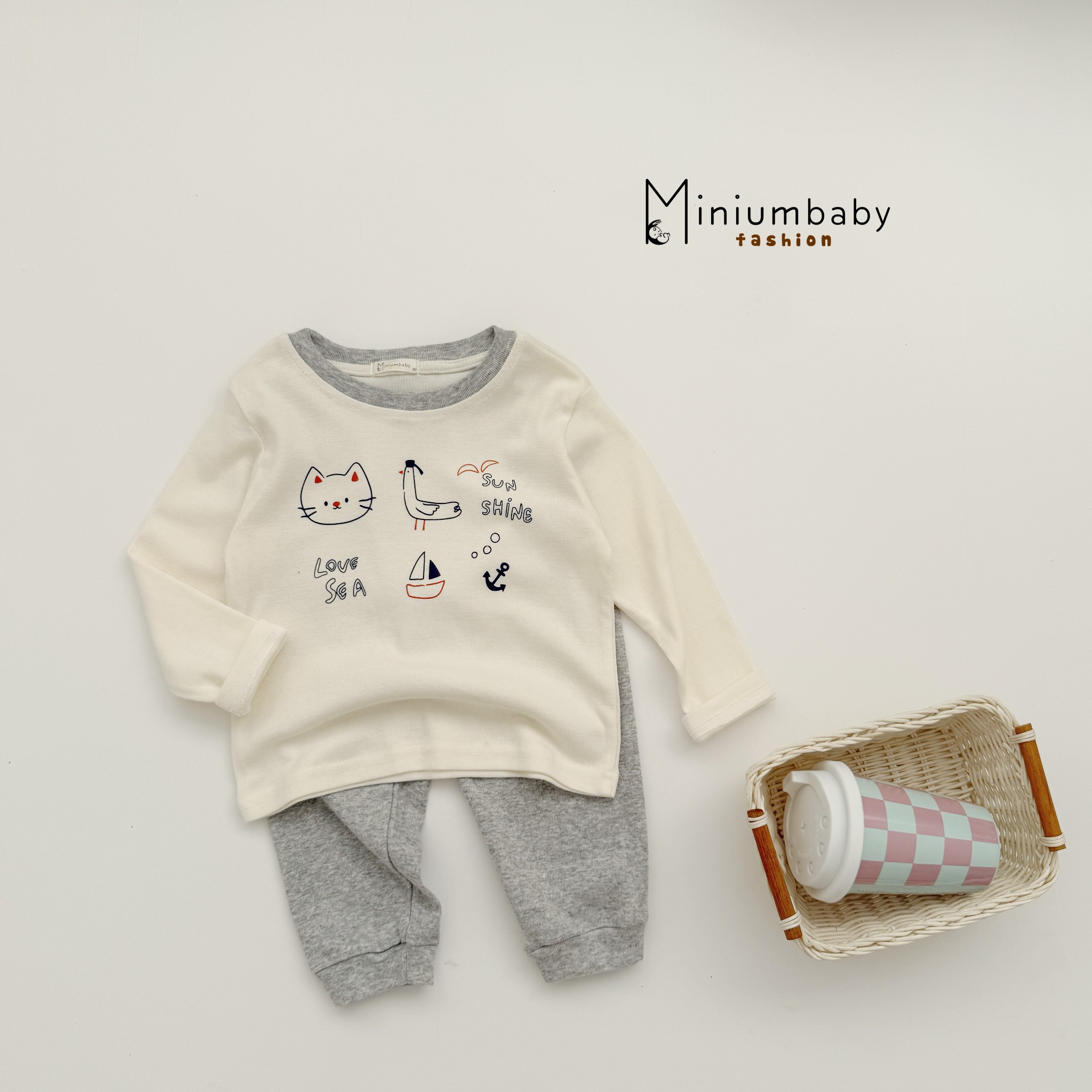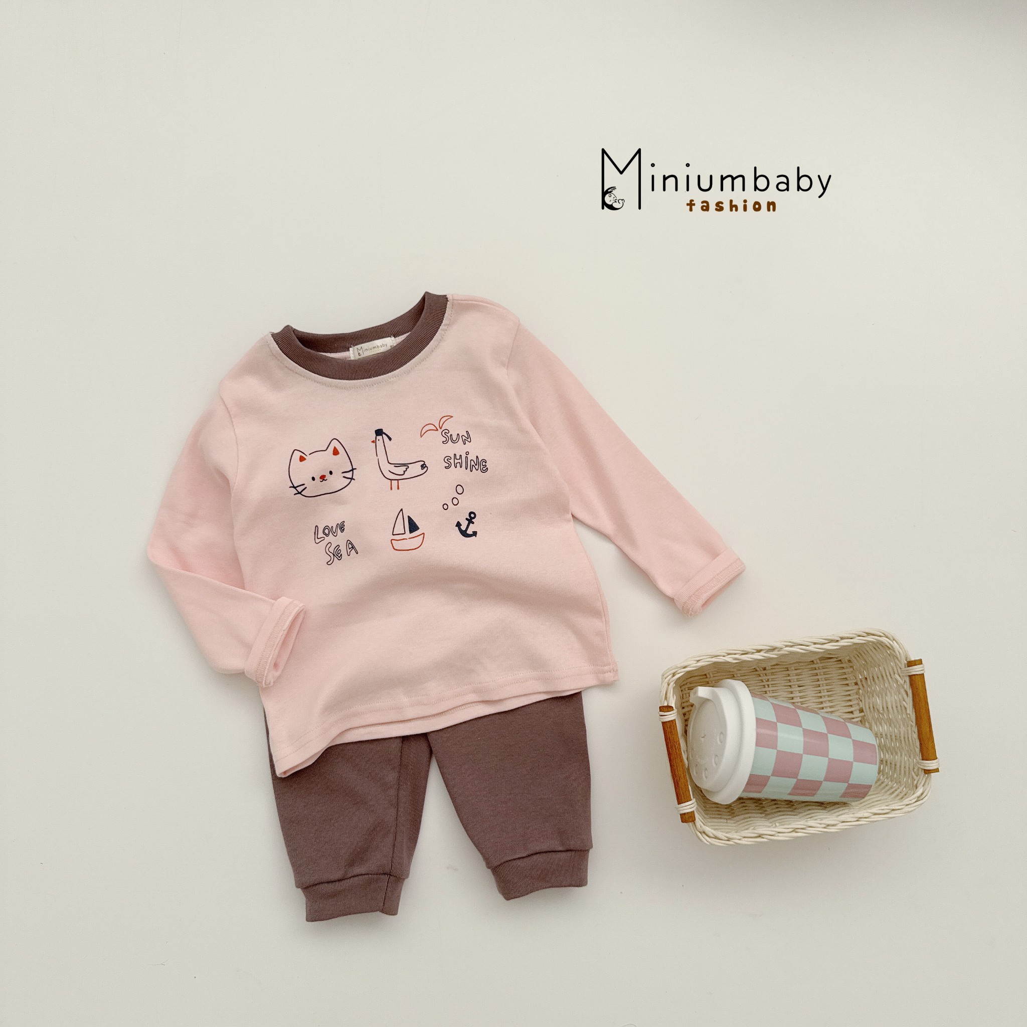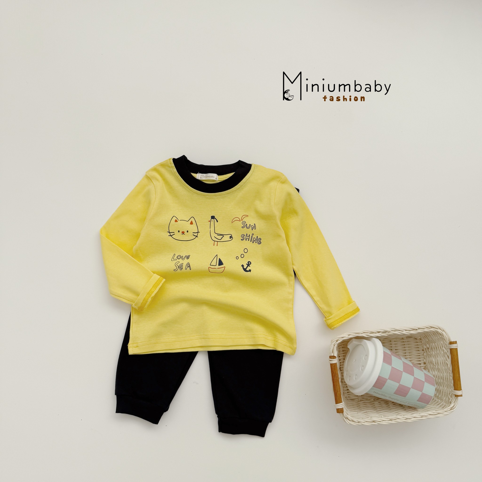 Bộ dài tay in thú quần và áo