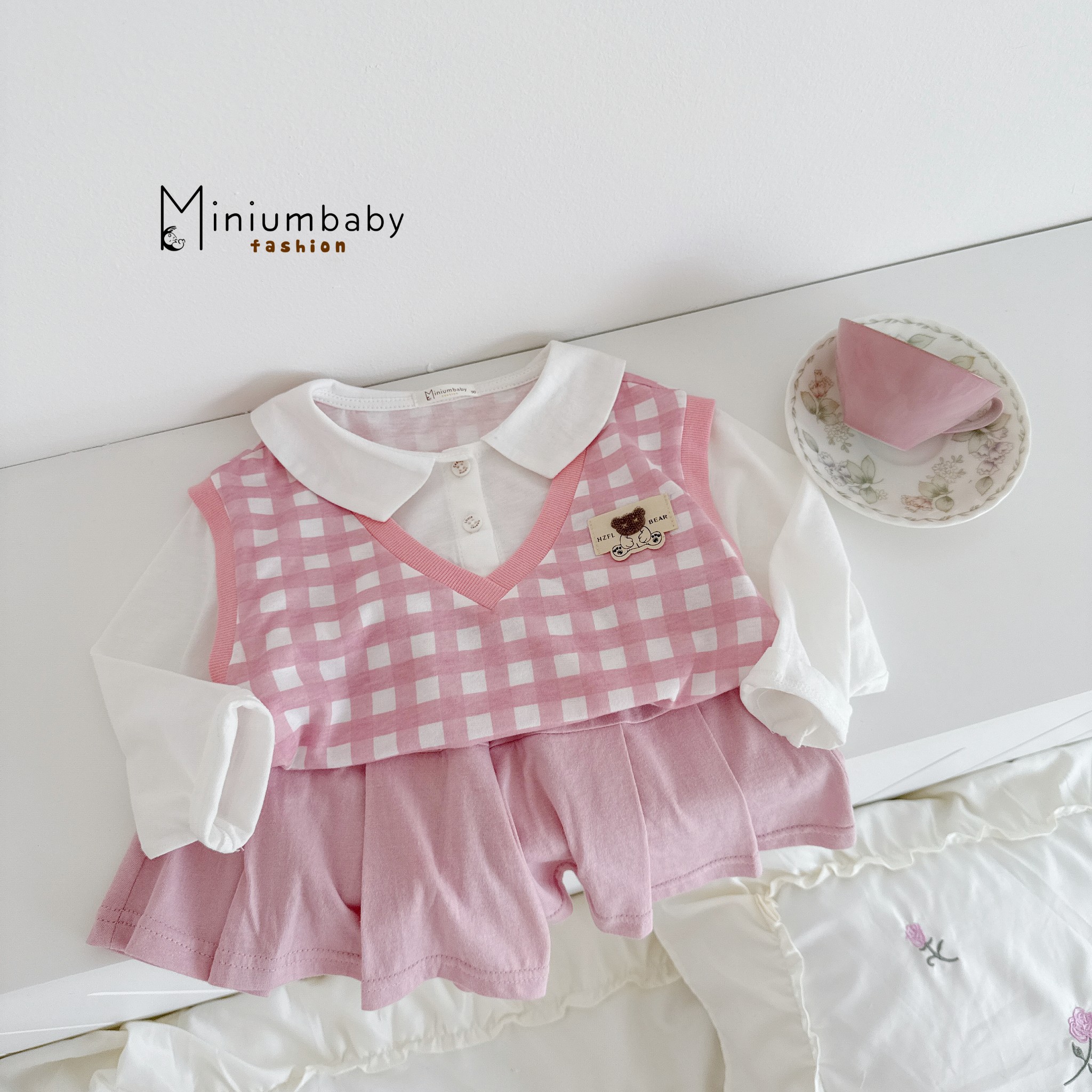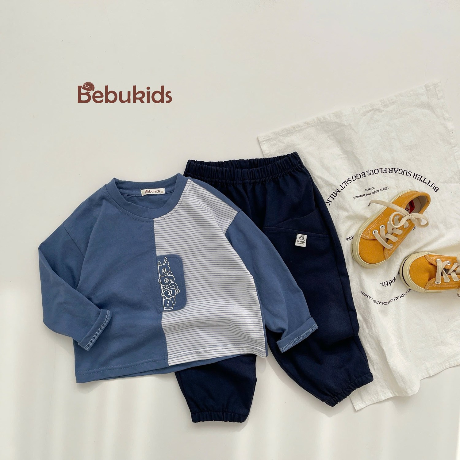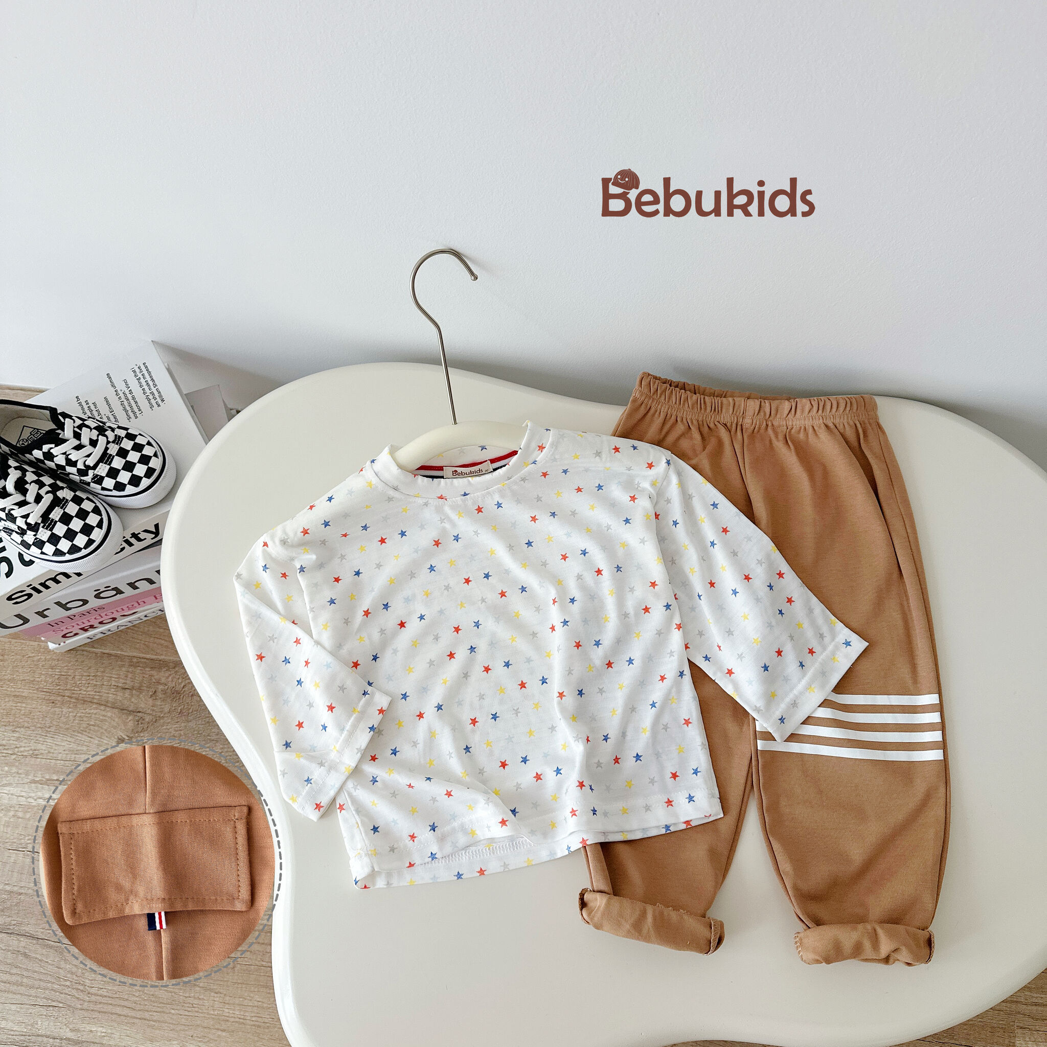 SB2199- bộ phối kẻ in gấu túi