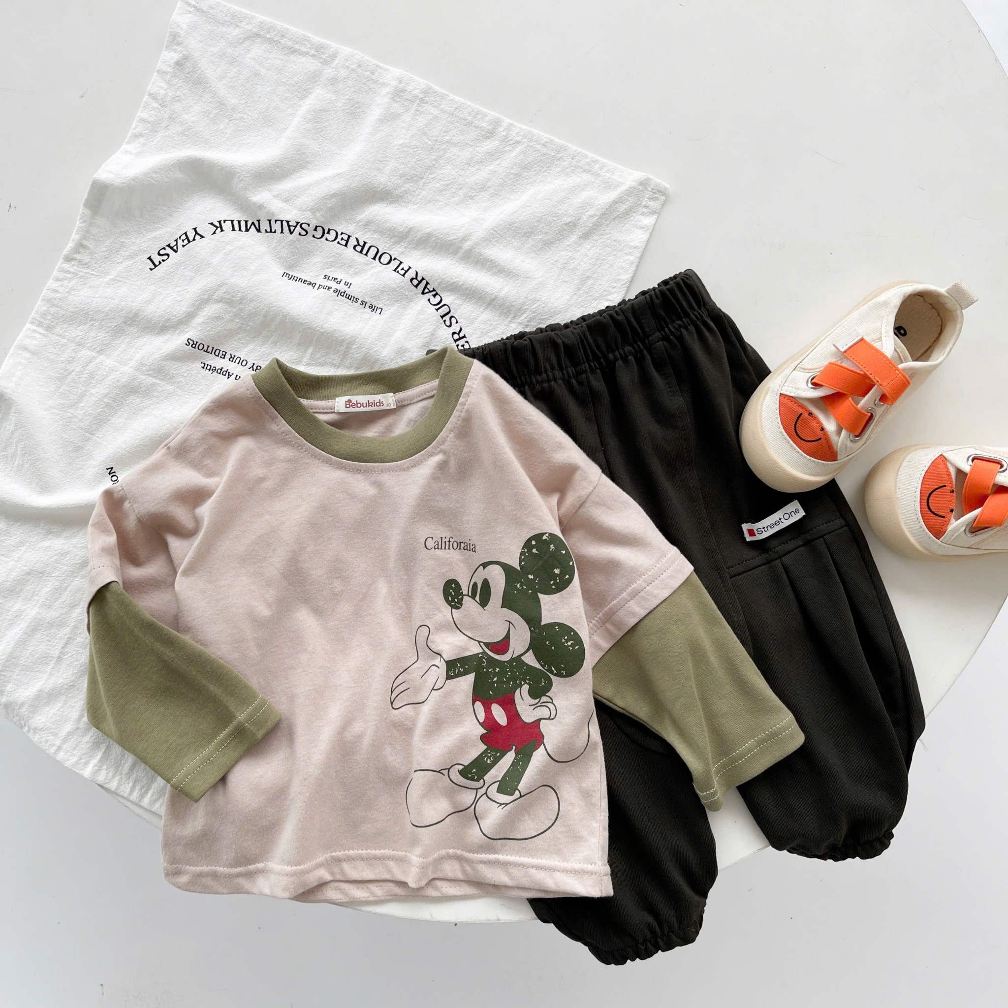 Bộ dài tay phối cổ, tay, thân in mickey