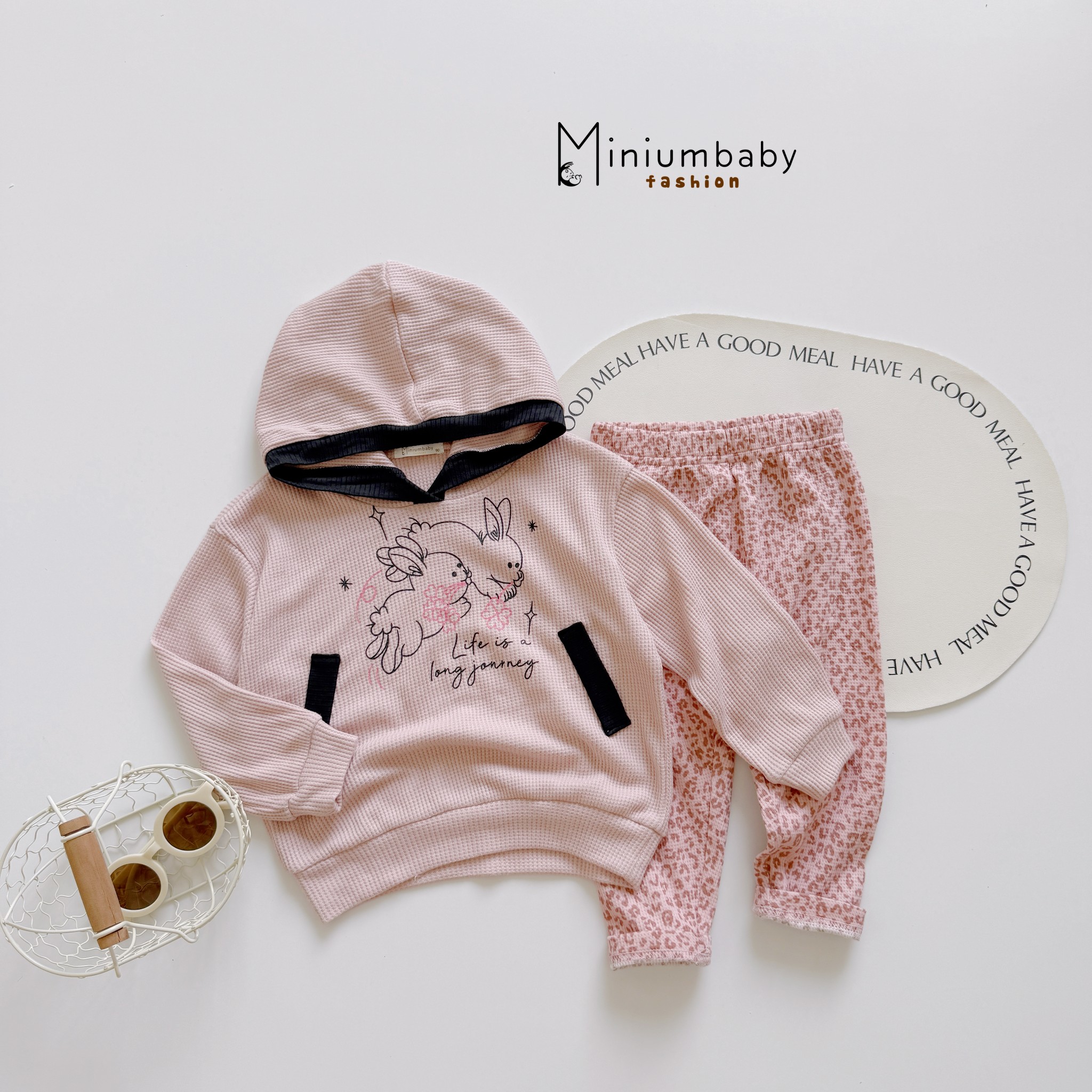 Bộ dài tay có mũ bé gái in thỏ