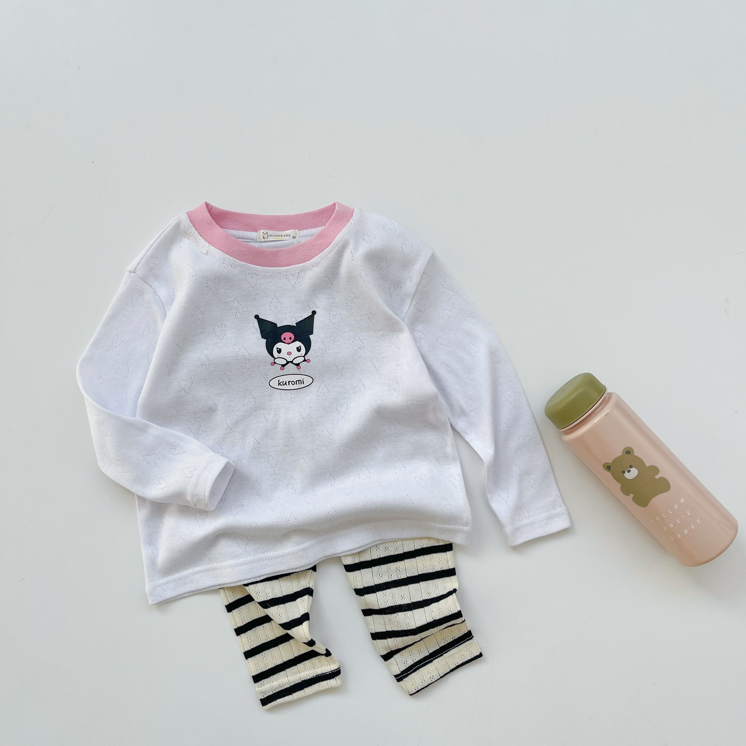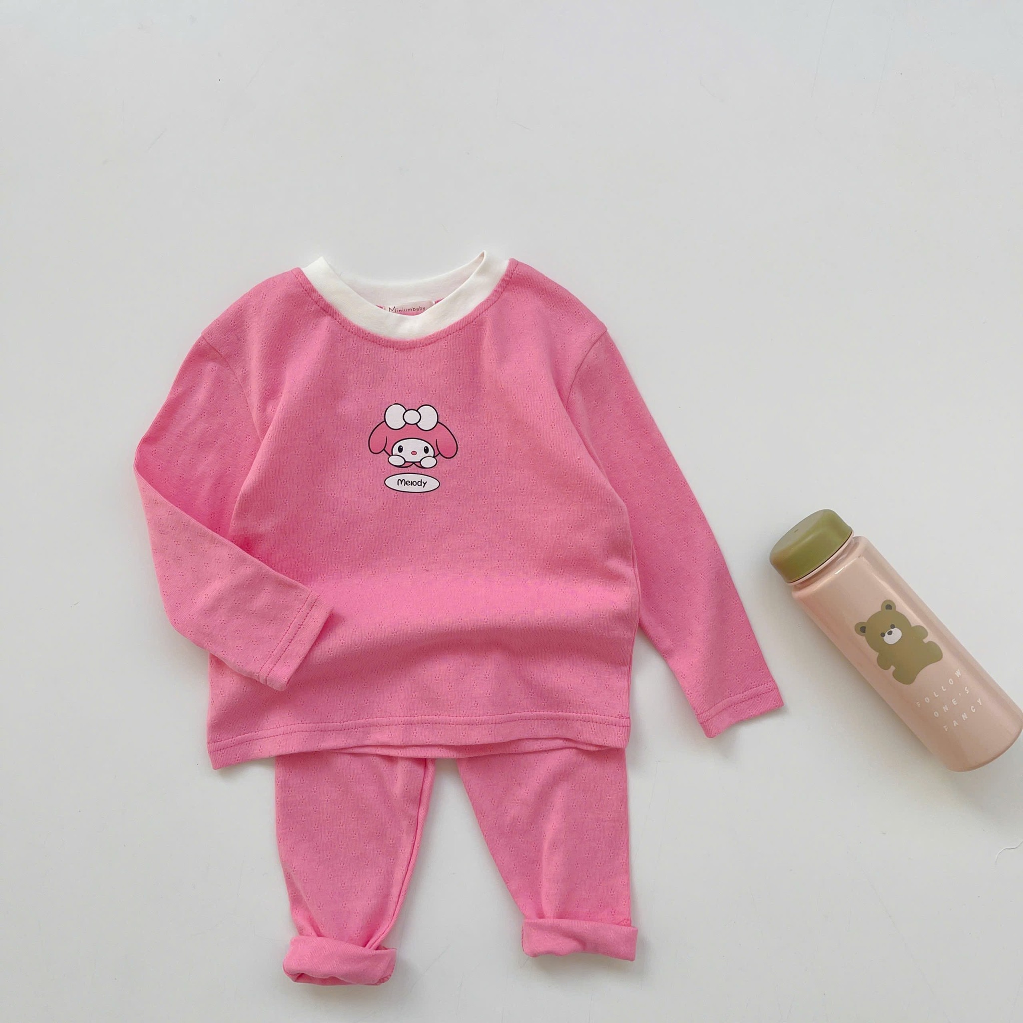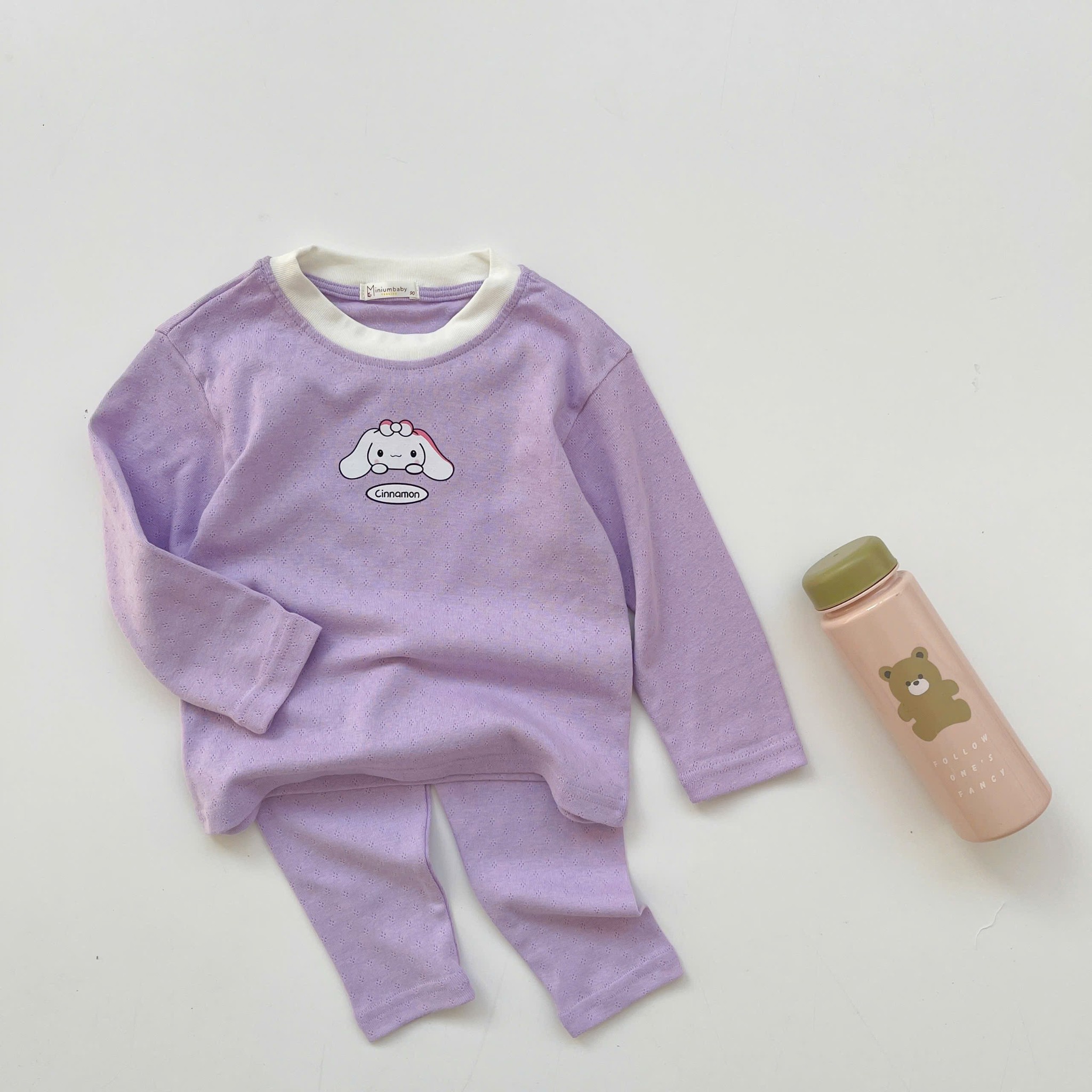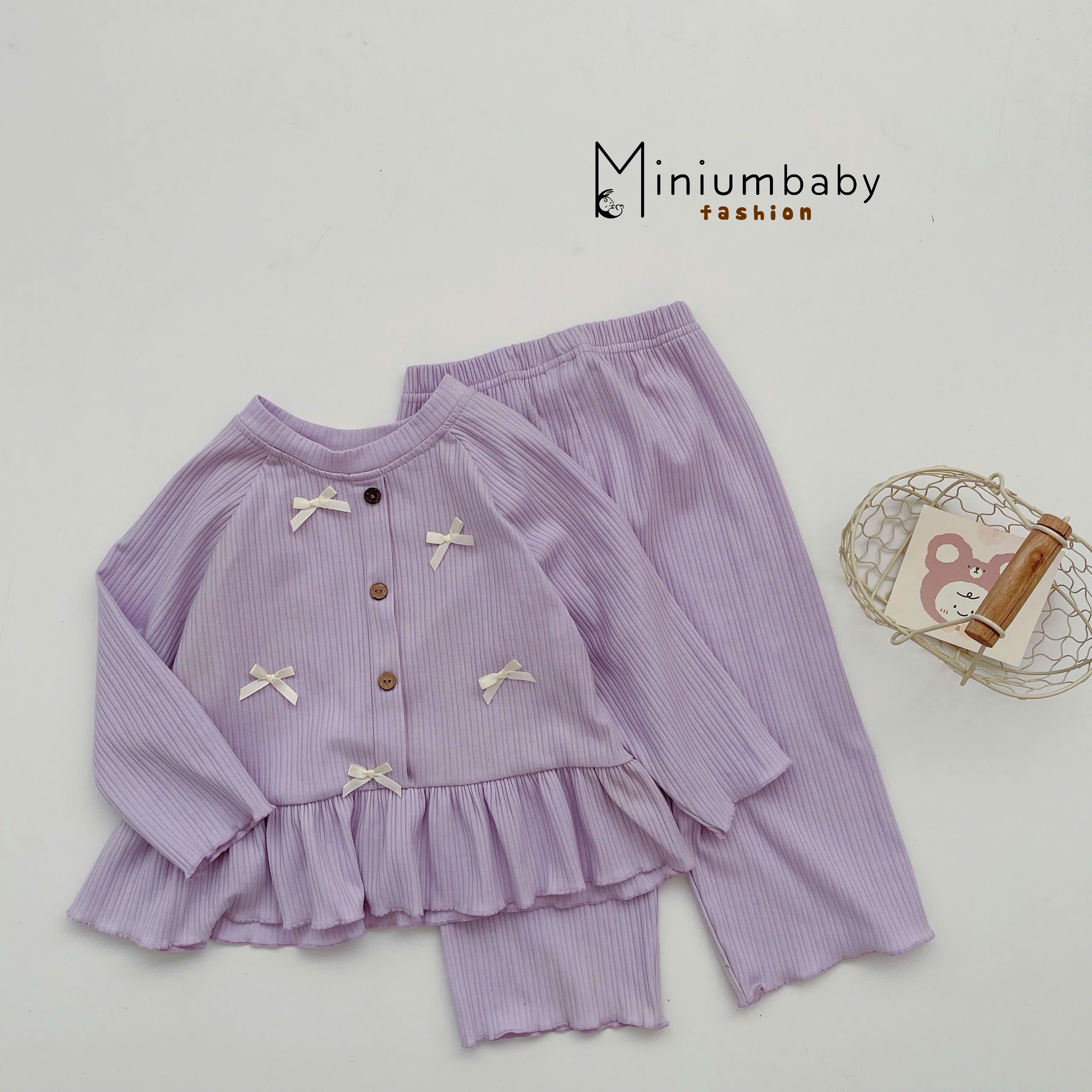 SB2213- bộ dài tay phối ngực đính nơ, quần in thỏ gấu quần