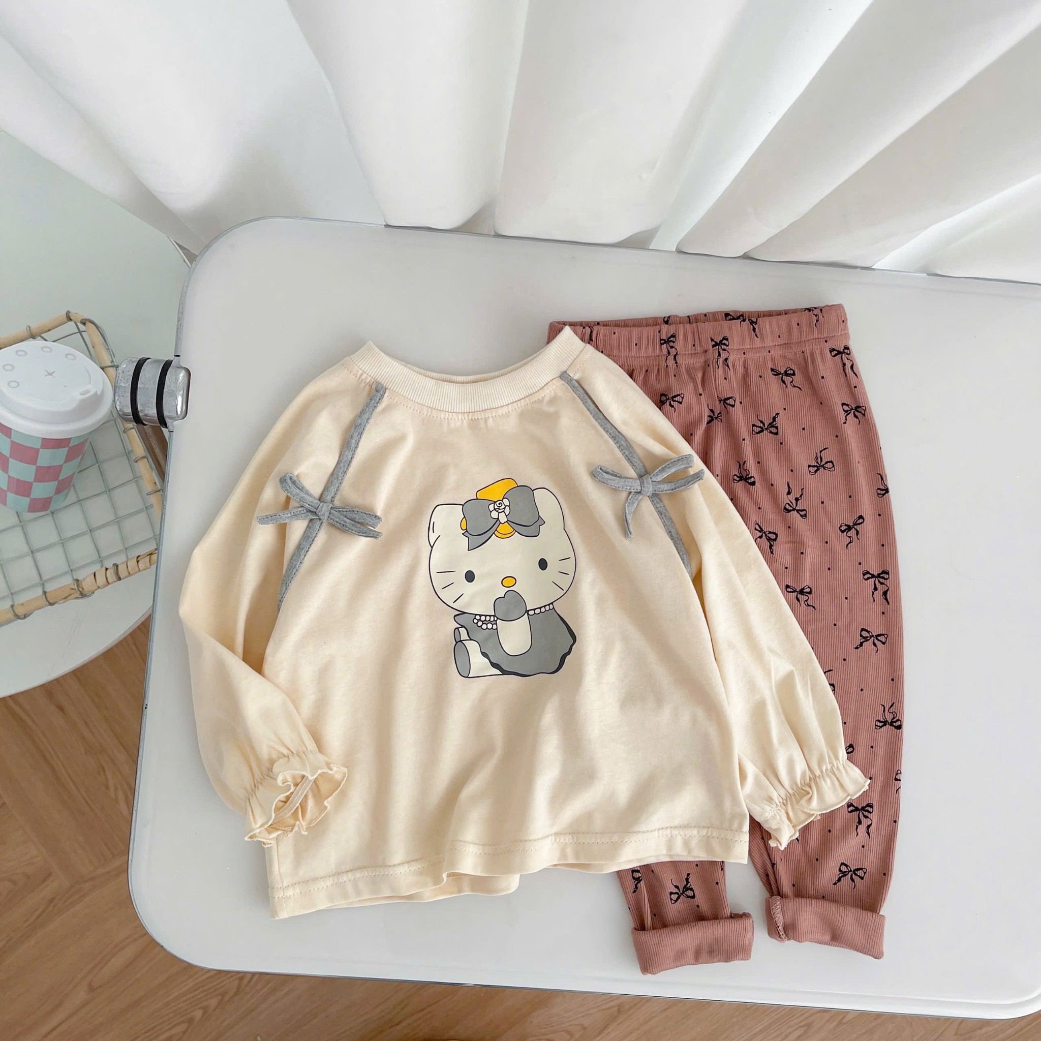 Bộ in mèo hello kitty quần gân nơ
