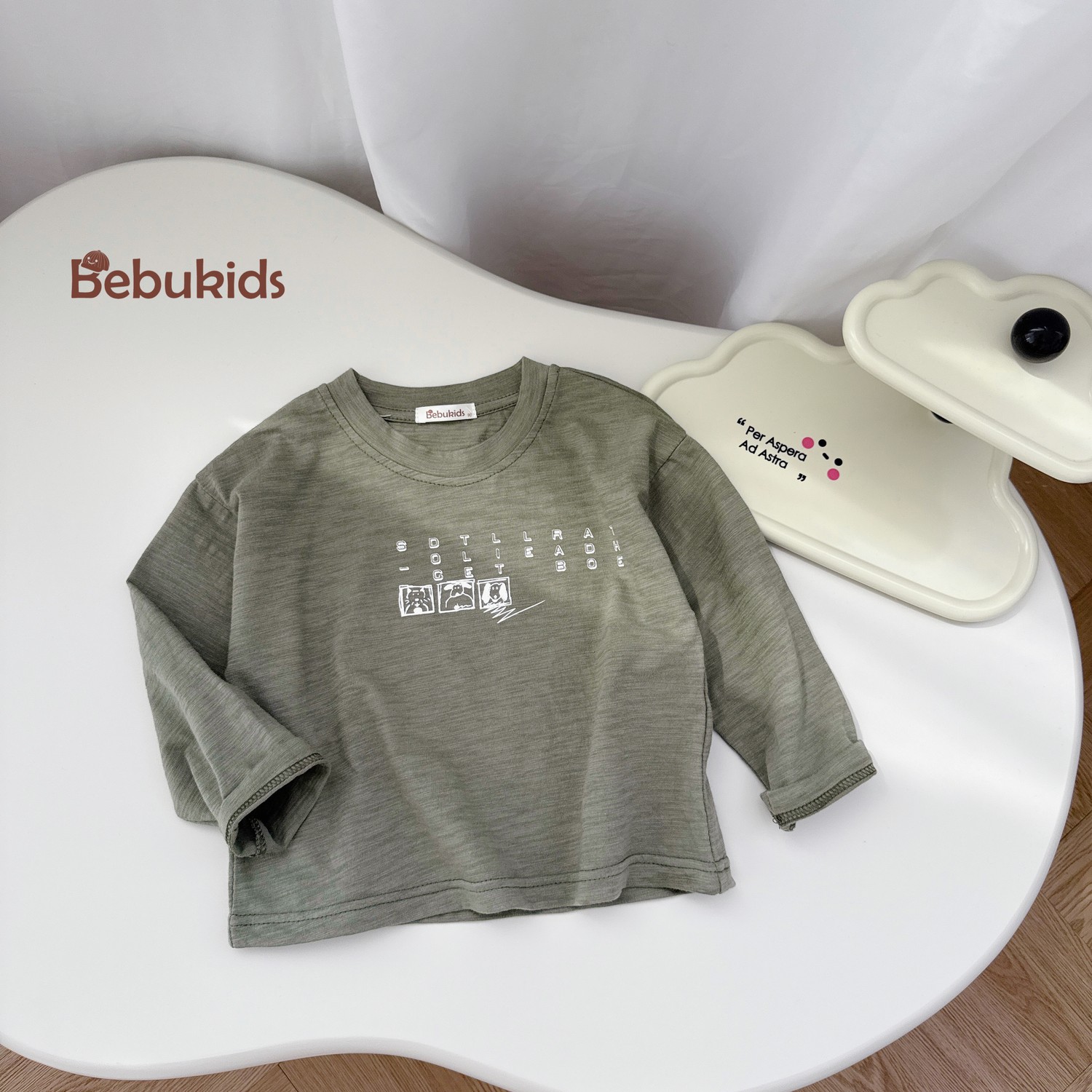 Áo dài tay in chữ 3 ô vuông