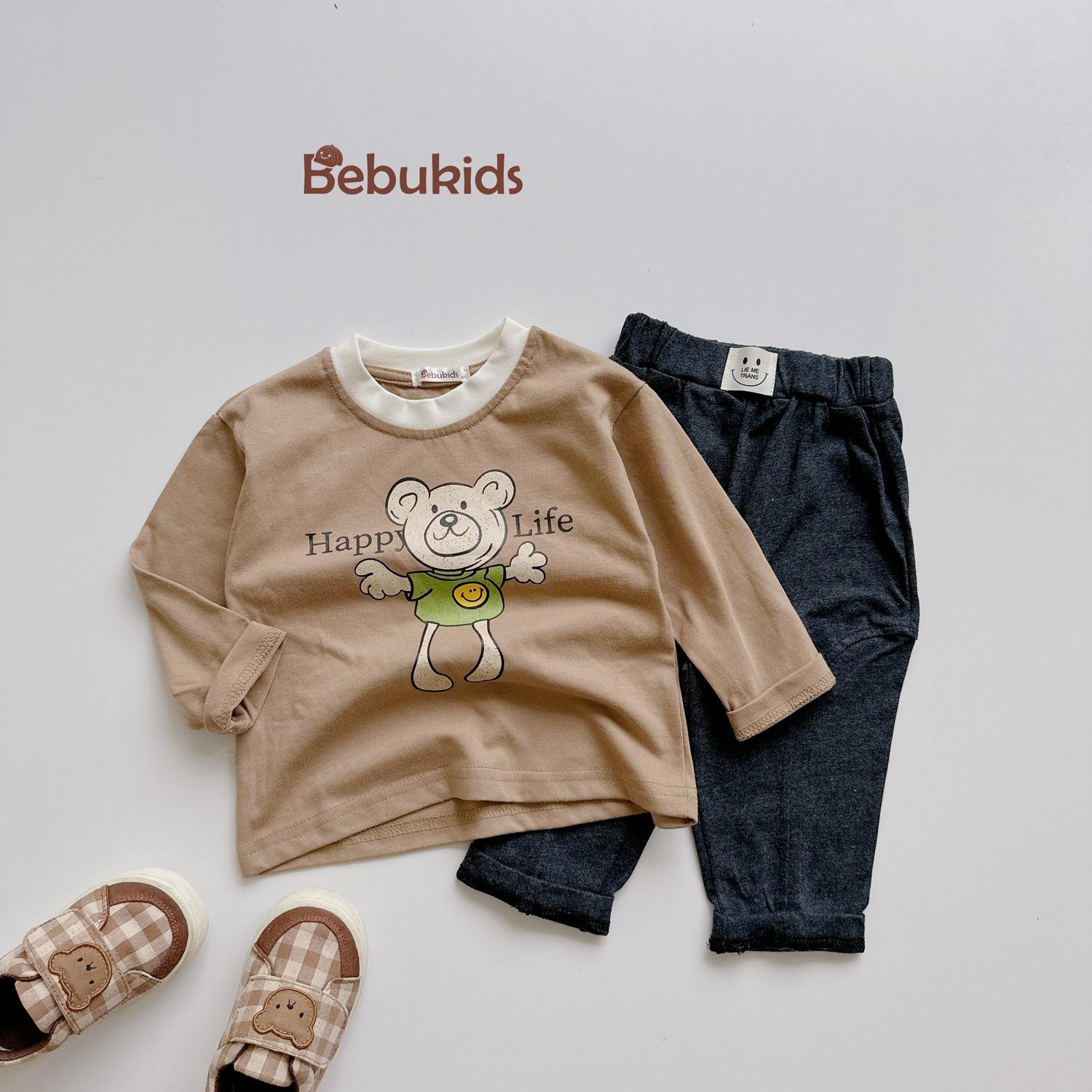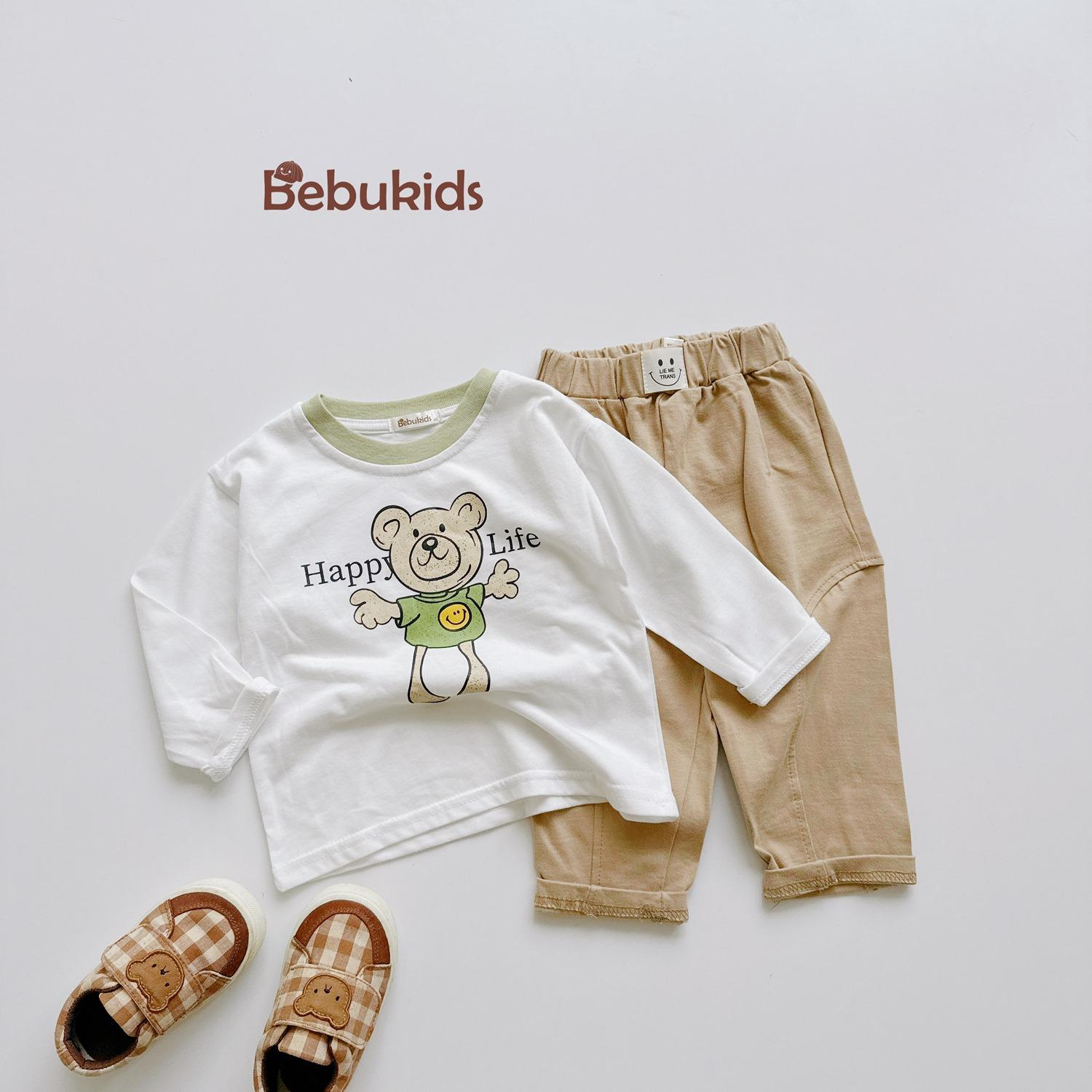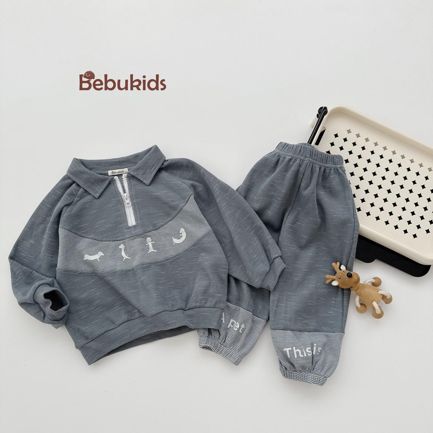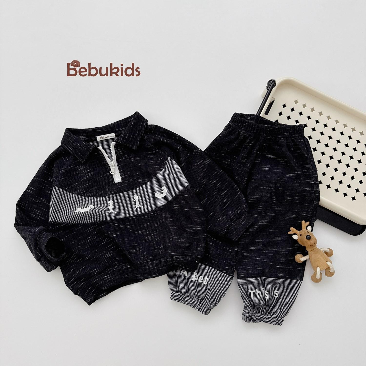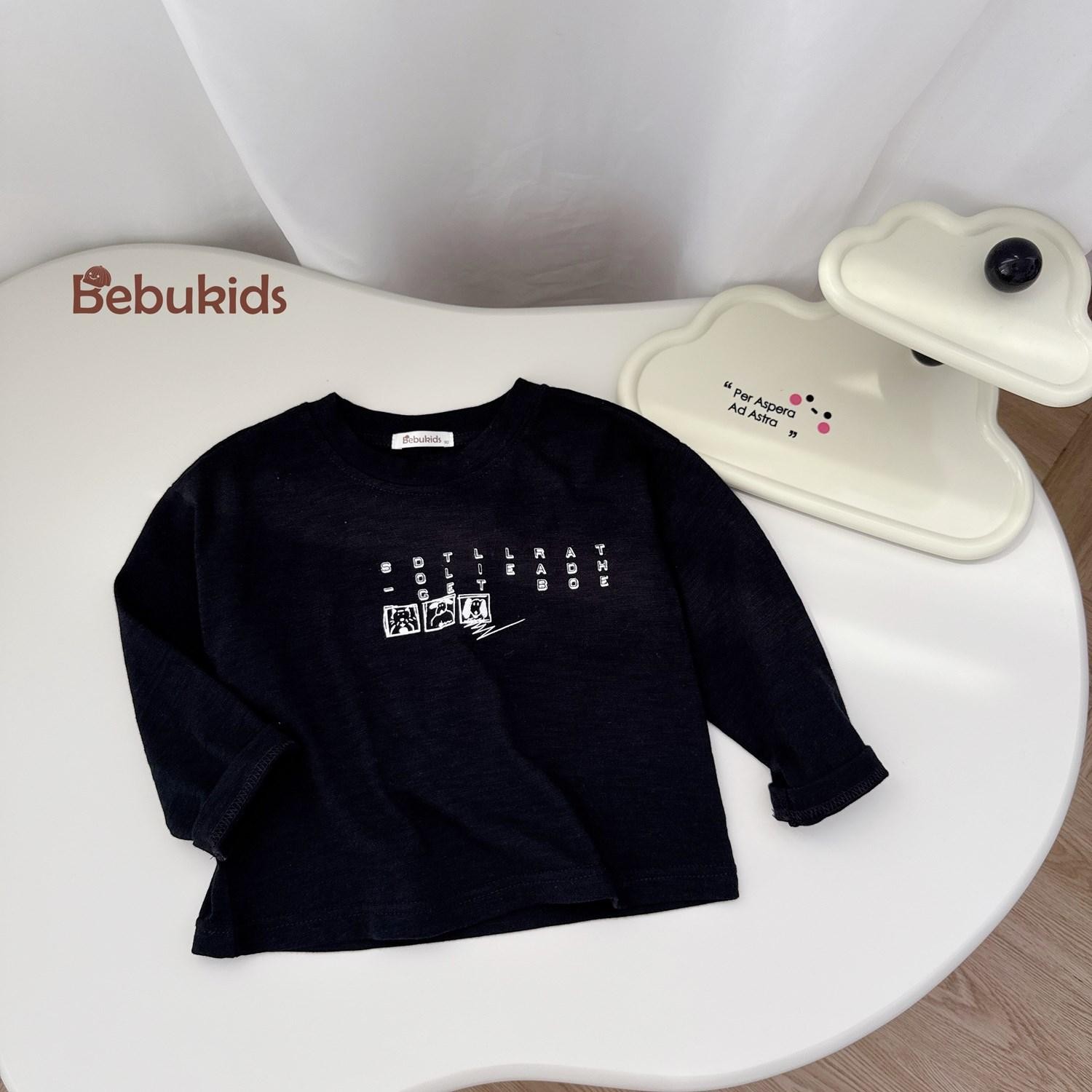 Bộ dài tay bo gấu bé trai, phối ngực in động vật, phối gấu quần in chữ