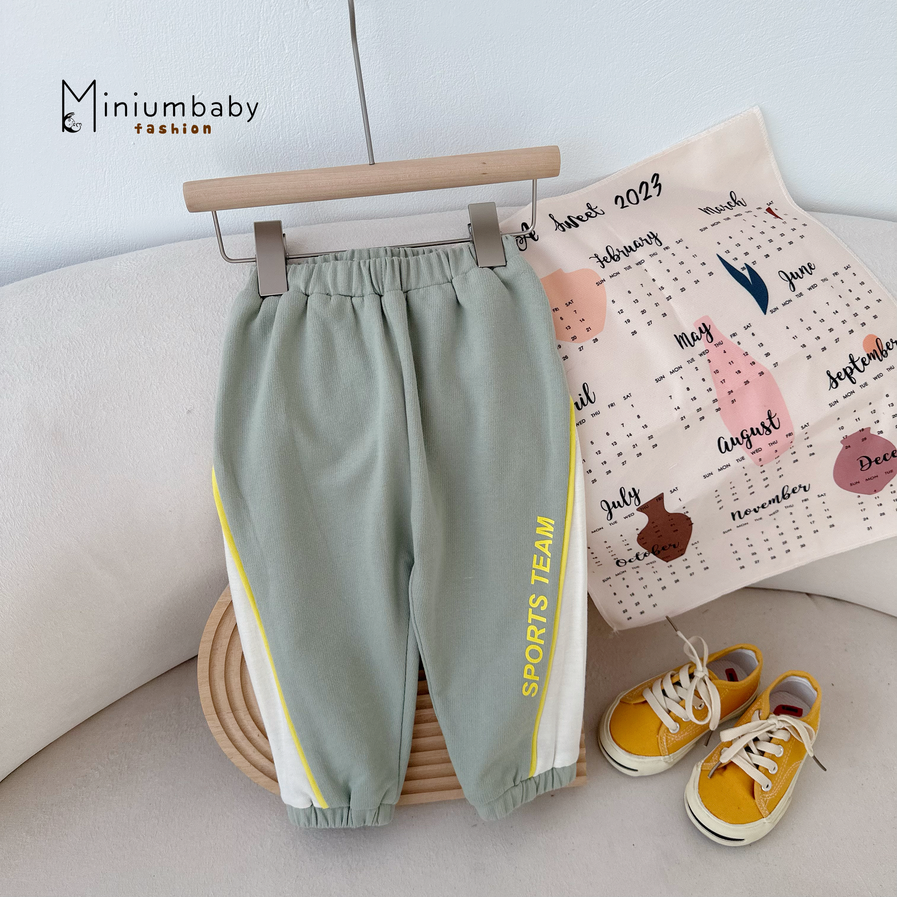 Quần da cá xanh in chữ sport team phối sườn