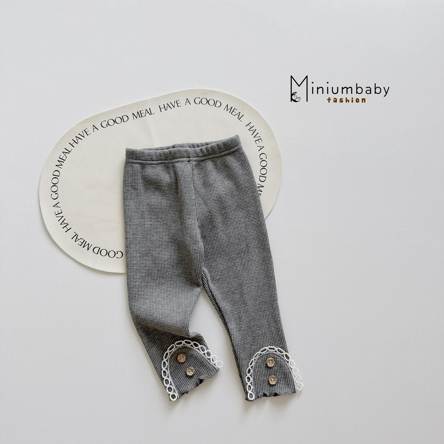 Quần dài bèo gấu phối ren đính nơ, cúc hoa