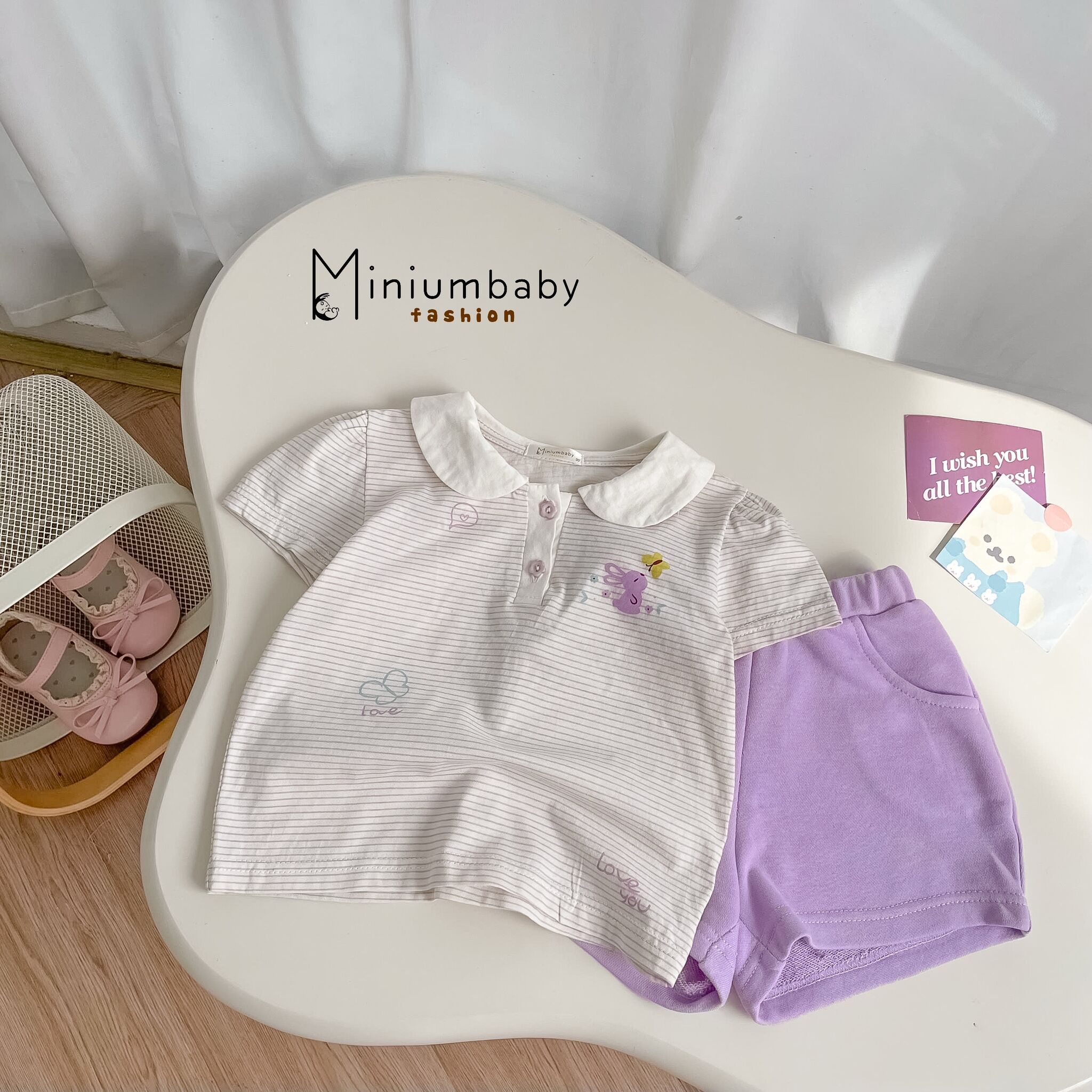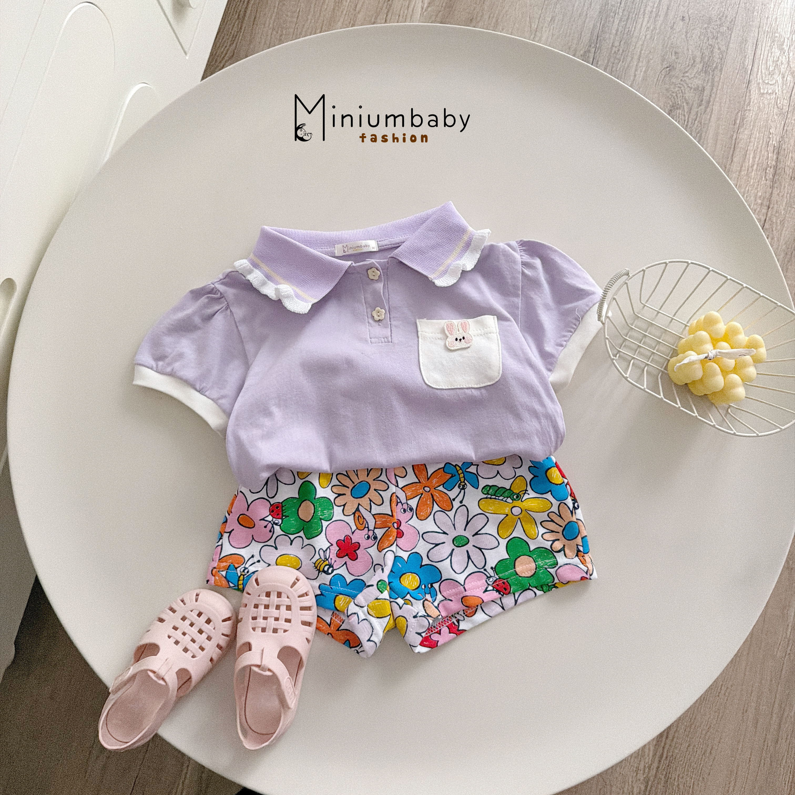 Bộ cổ sen cộc tay bé gái in thỏ, bướm