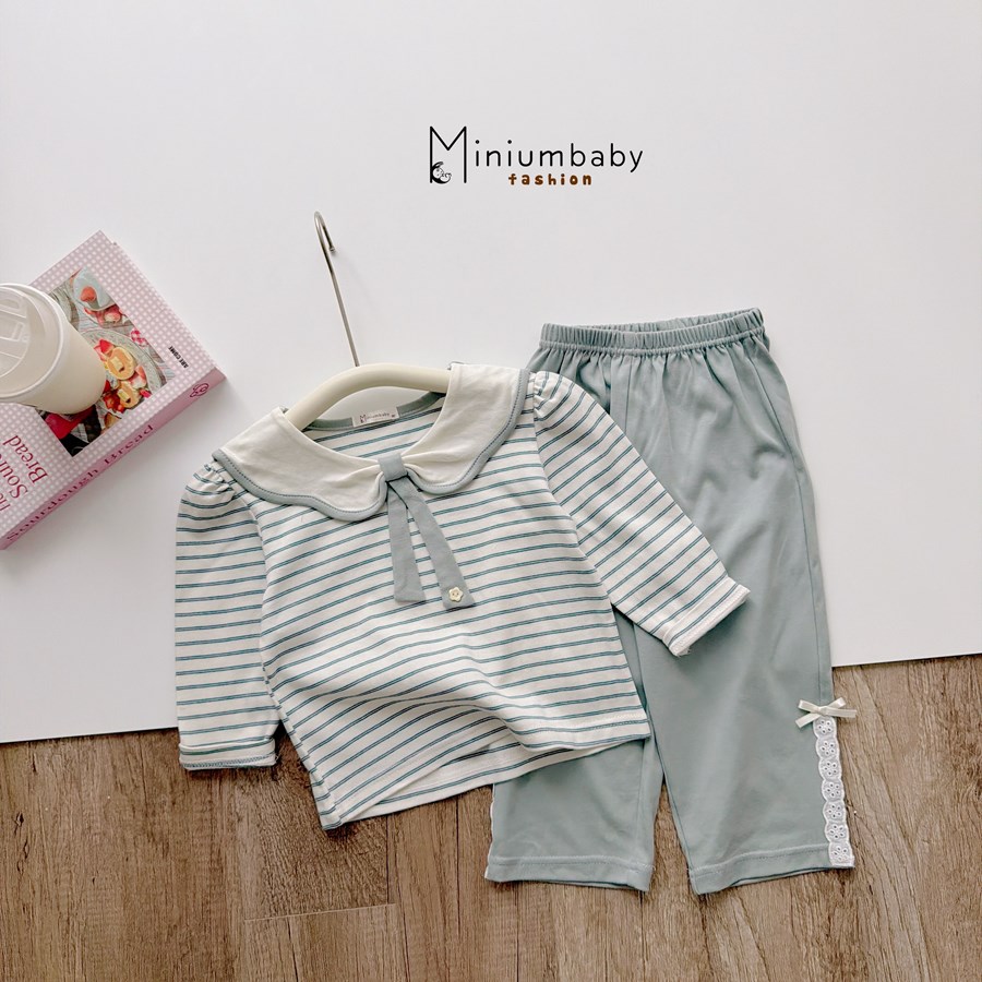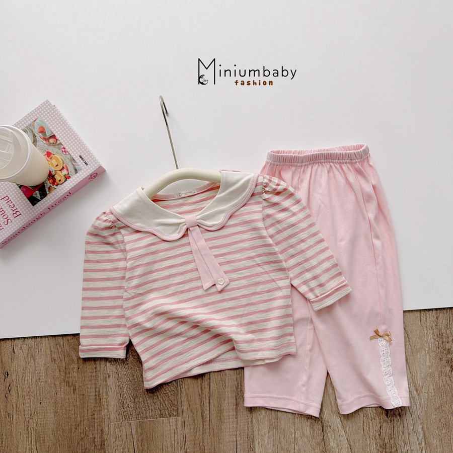 Bộ dài tay cổ sen bé gái cổ đính nơ phối viền, áo in nơ, mini, thỏ, sao