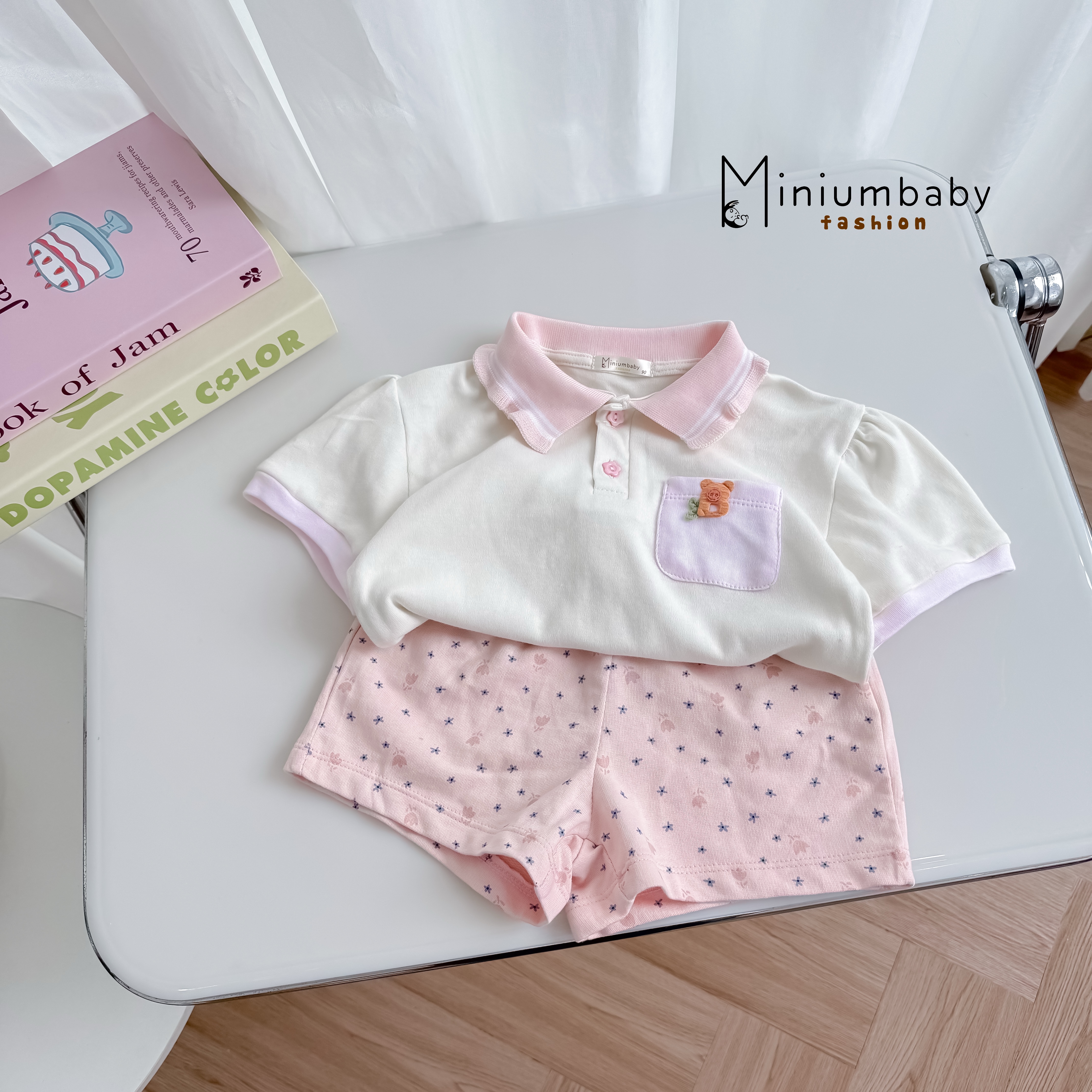 -48% Bộ cộc quần lỡ bé gái có cổ