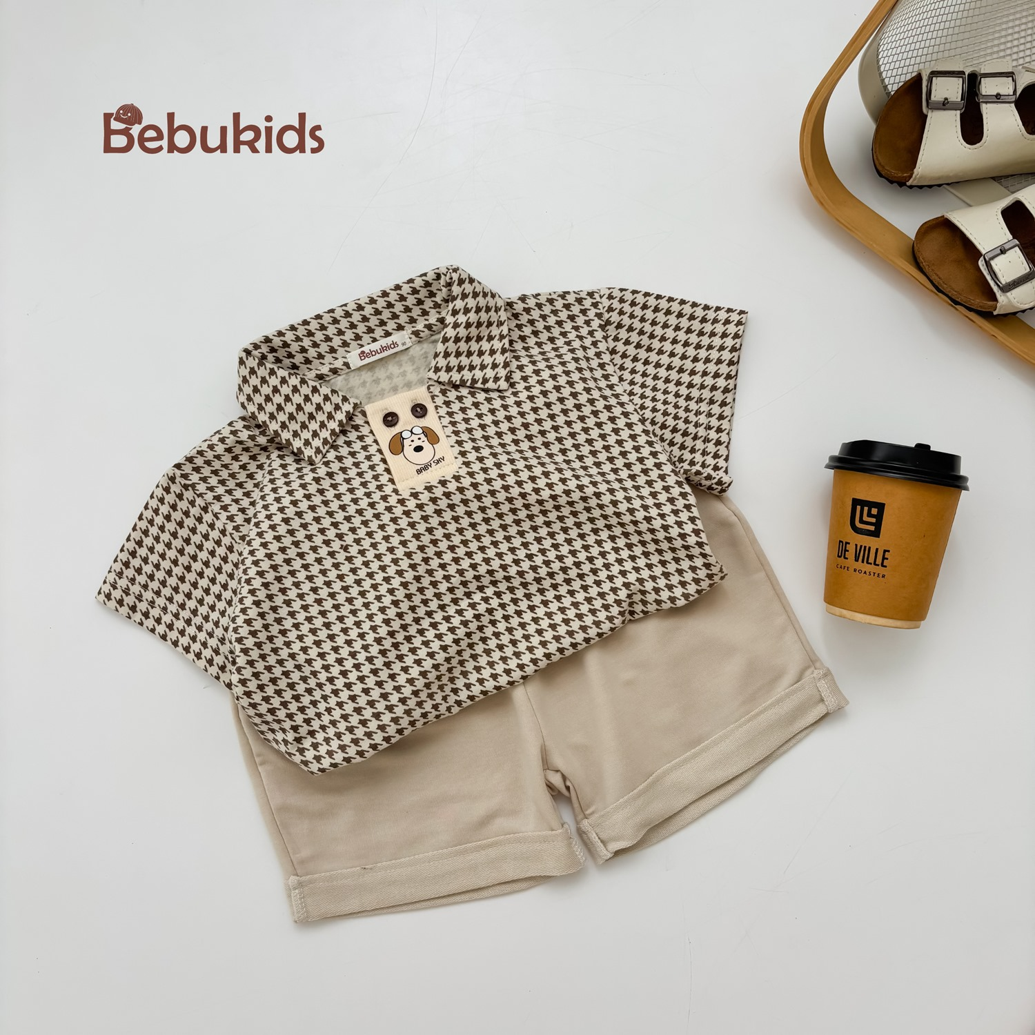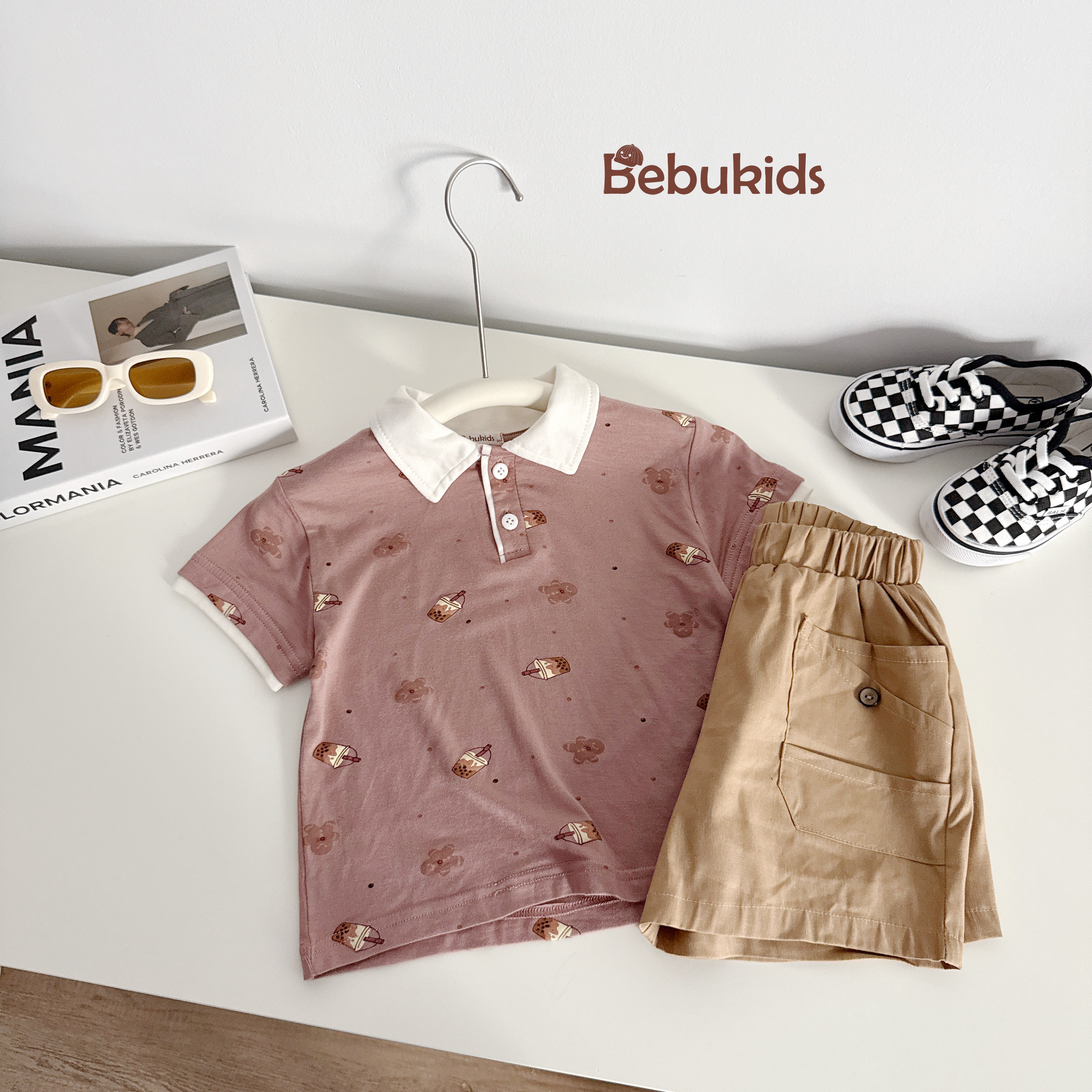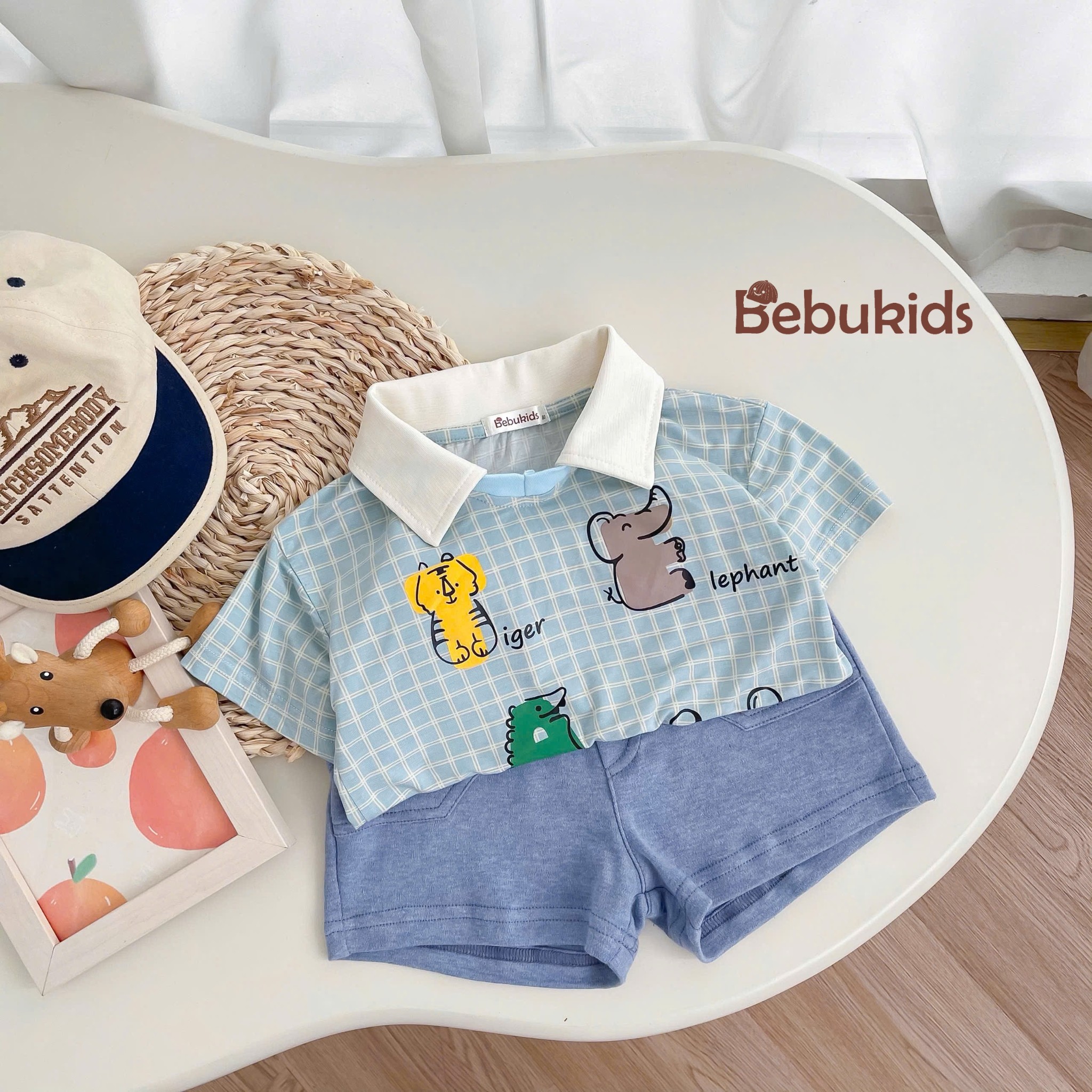 Bộ polo karo in chữ động vật