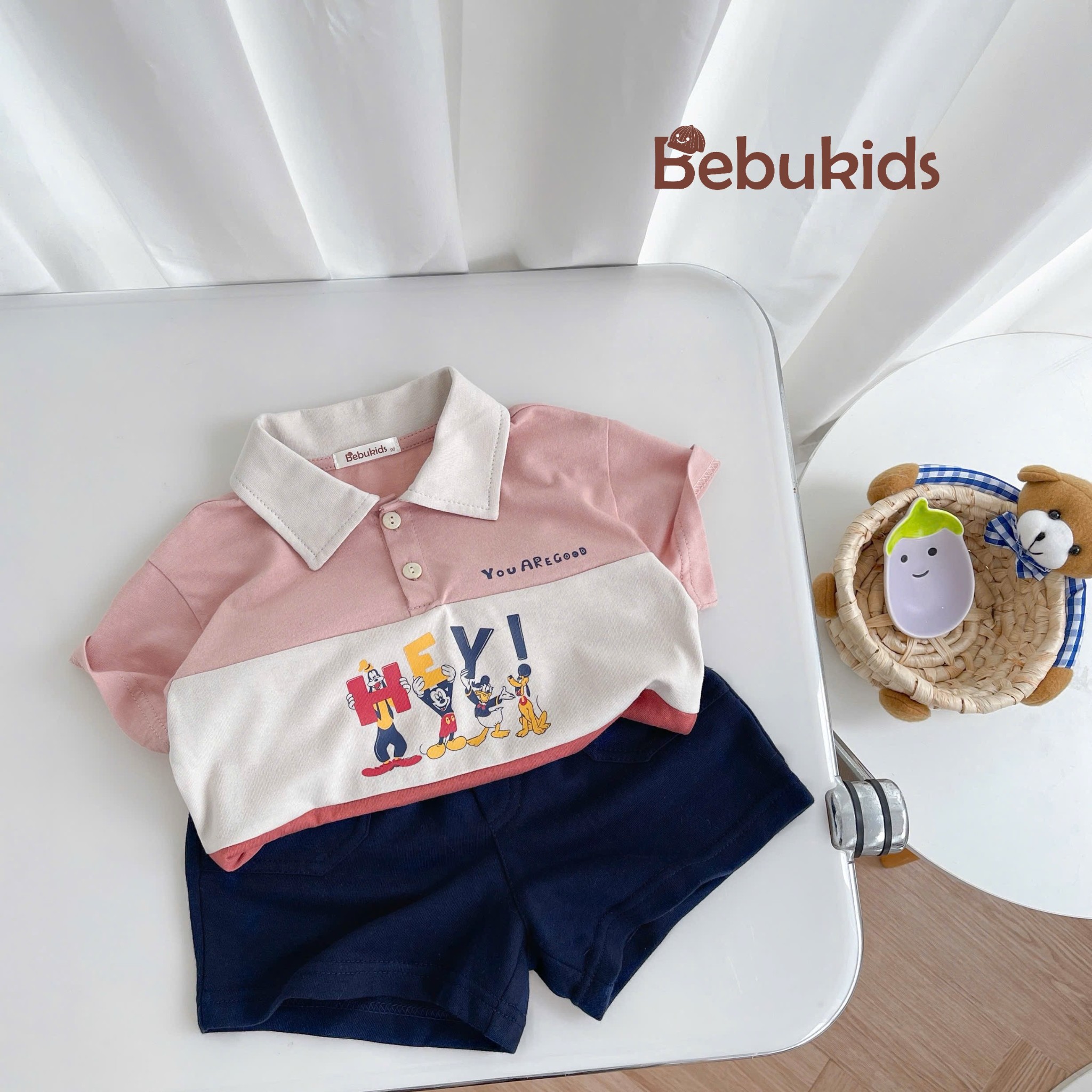 Bộ polo phối than in chuột mickey, hey