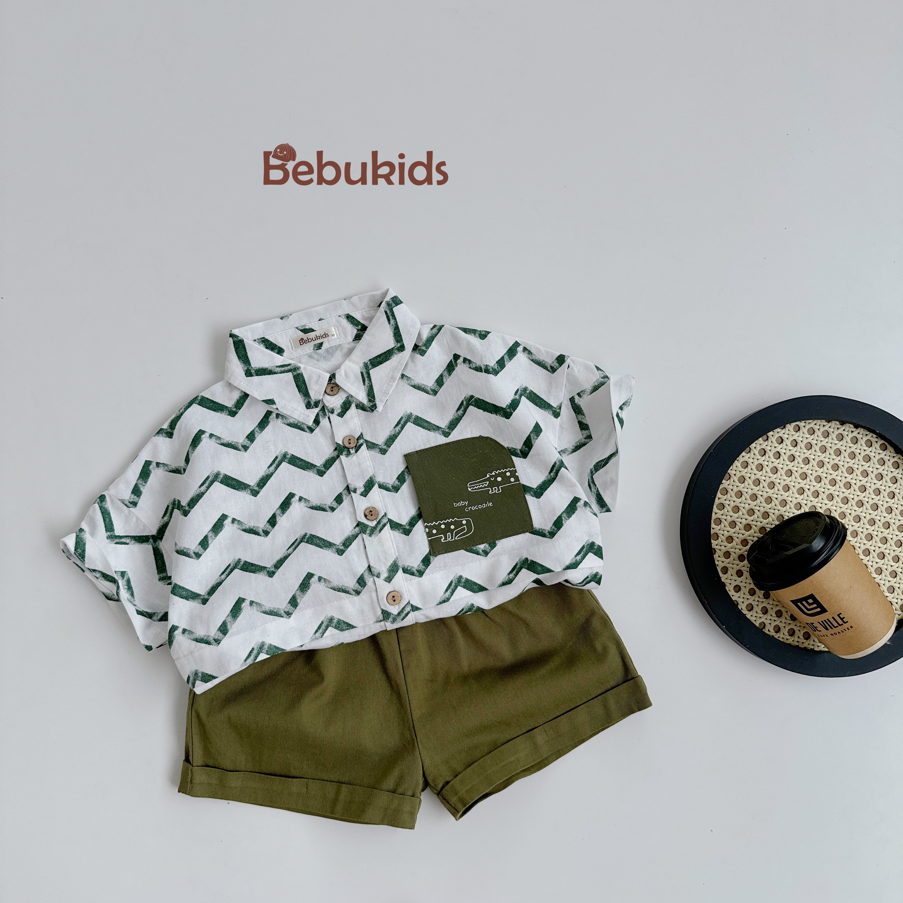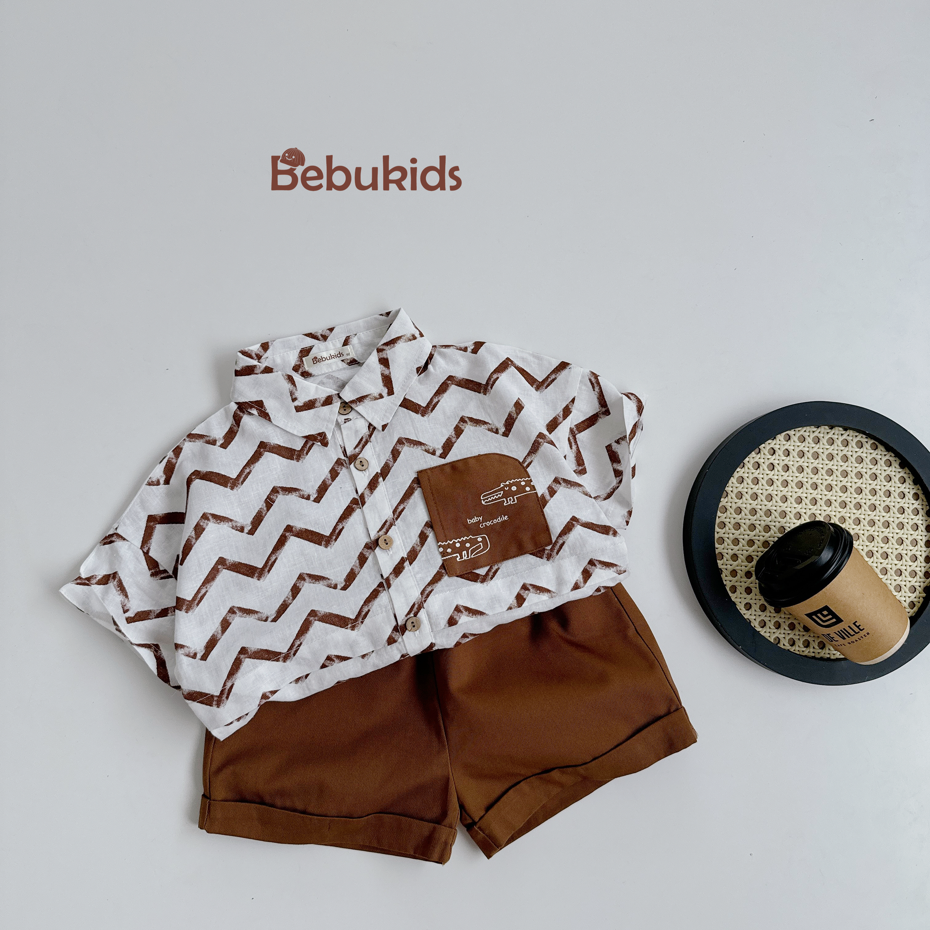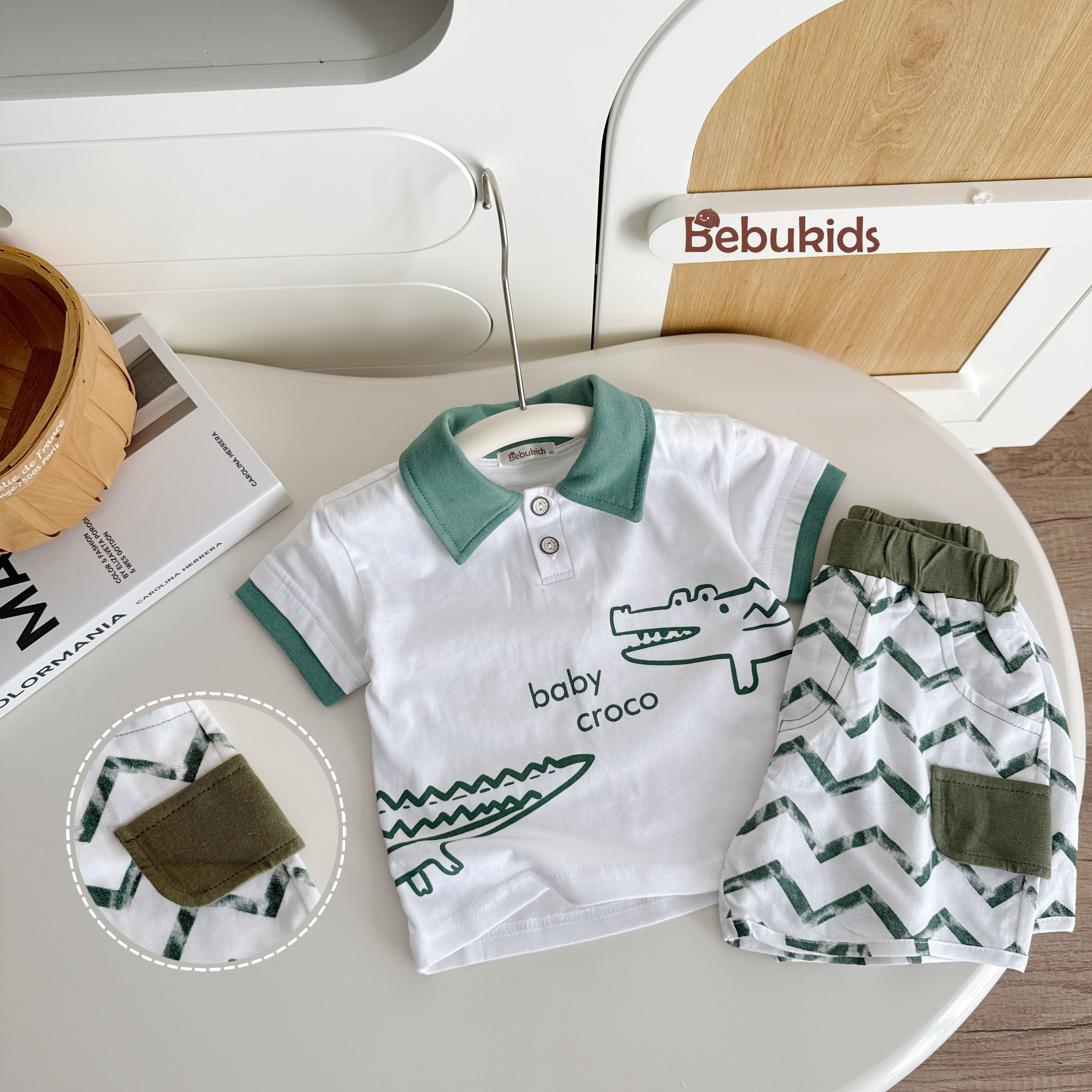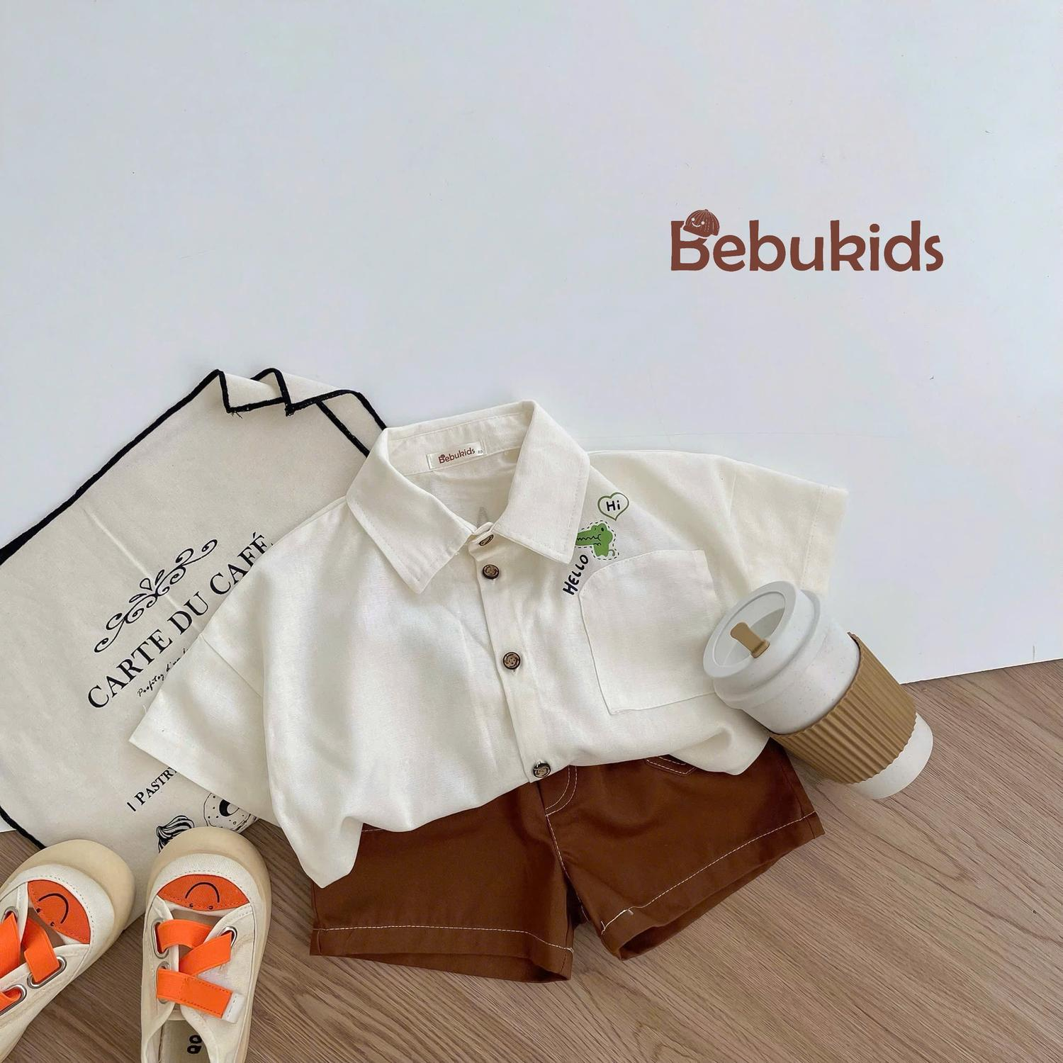 Bộ sơ mi túi cá sấu bé trai