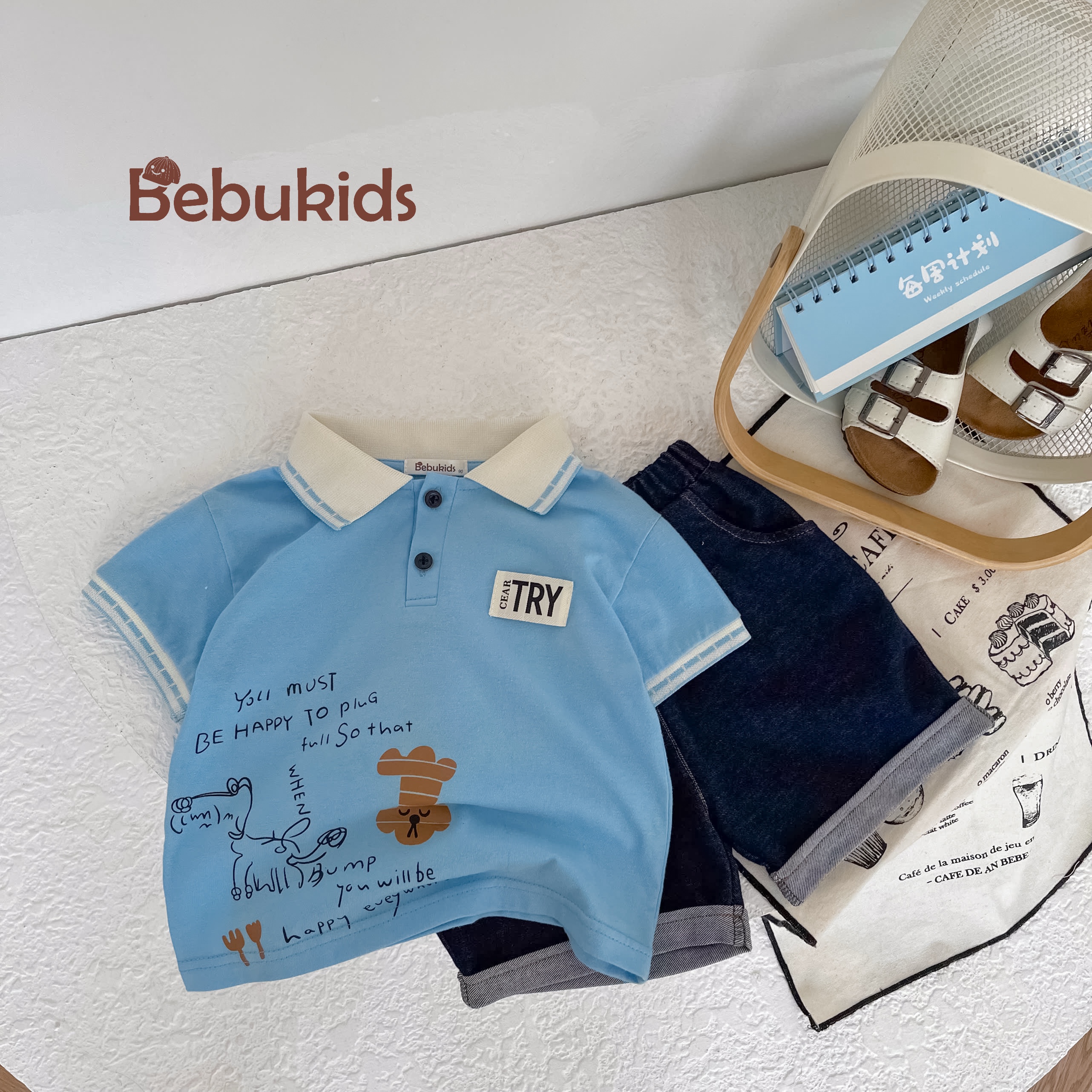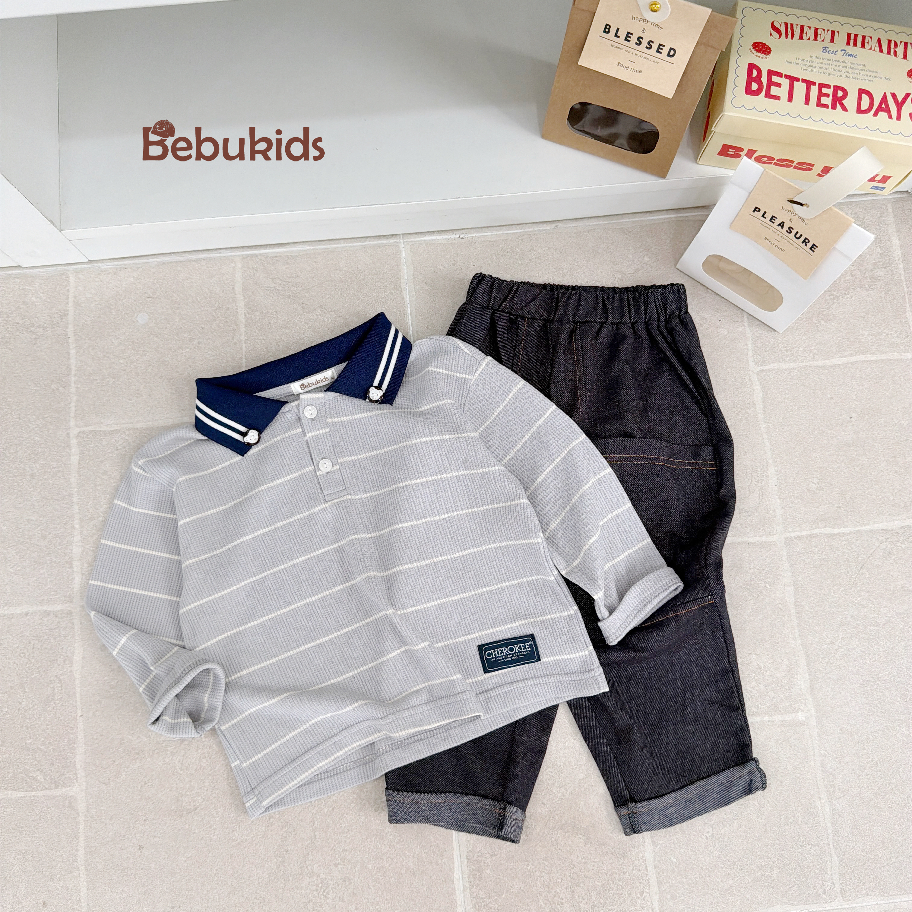 Bộ polo bé trai phối viền cổ, logo đính nẹp