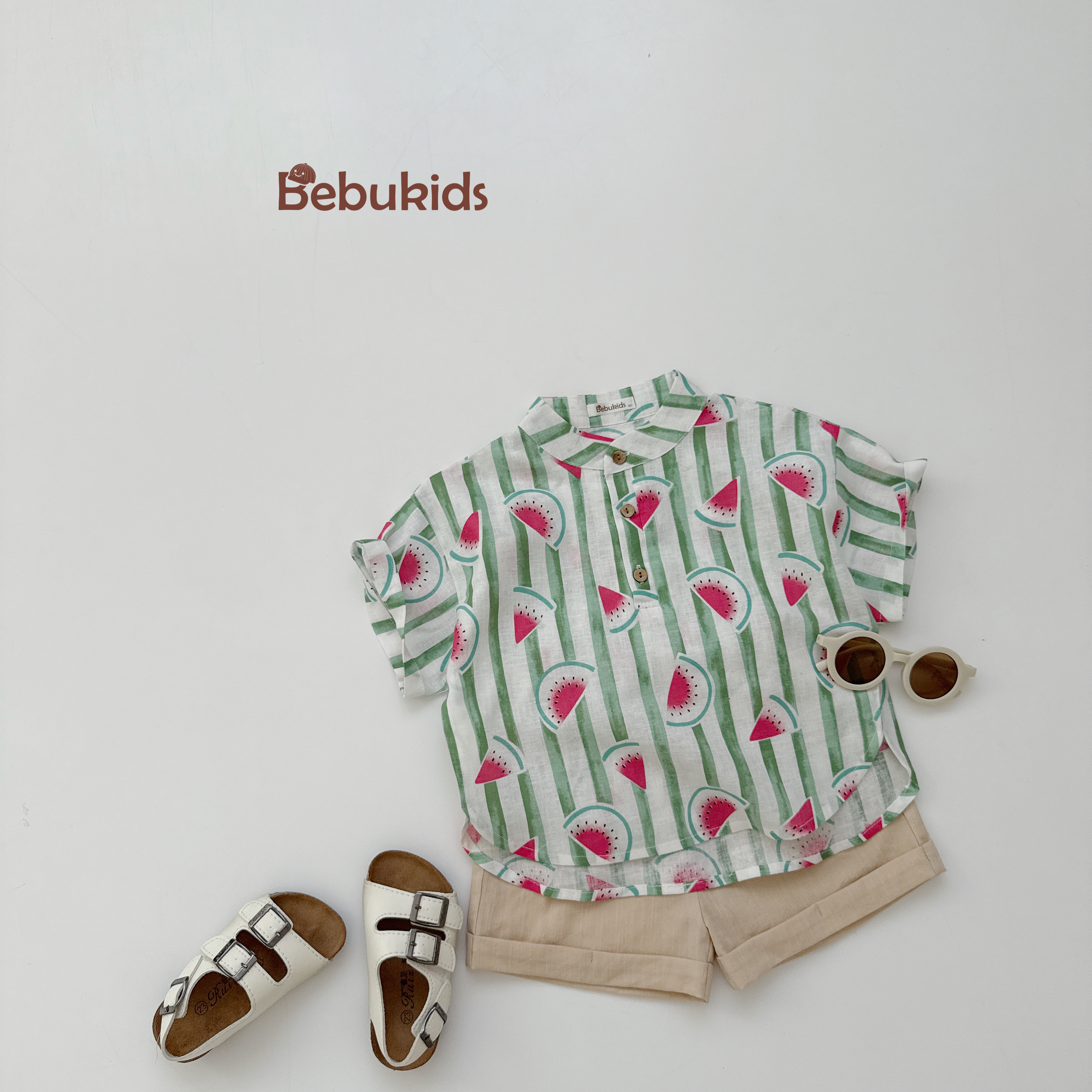 Bộ sơ mi bé trai in dừa, dưa hấu
