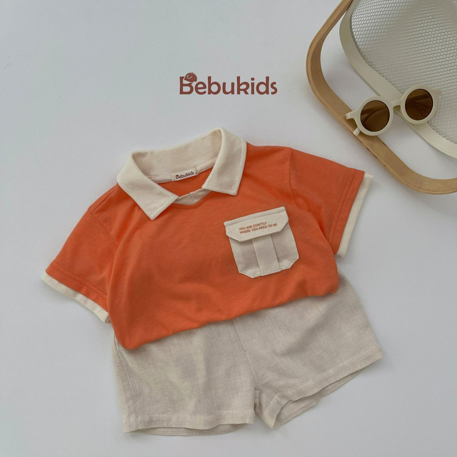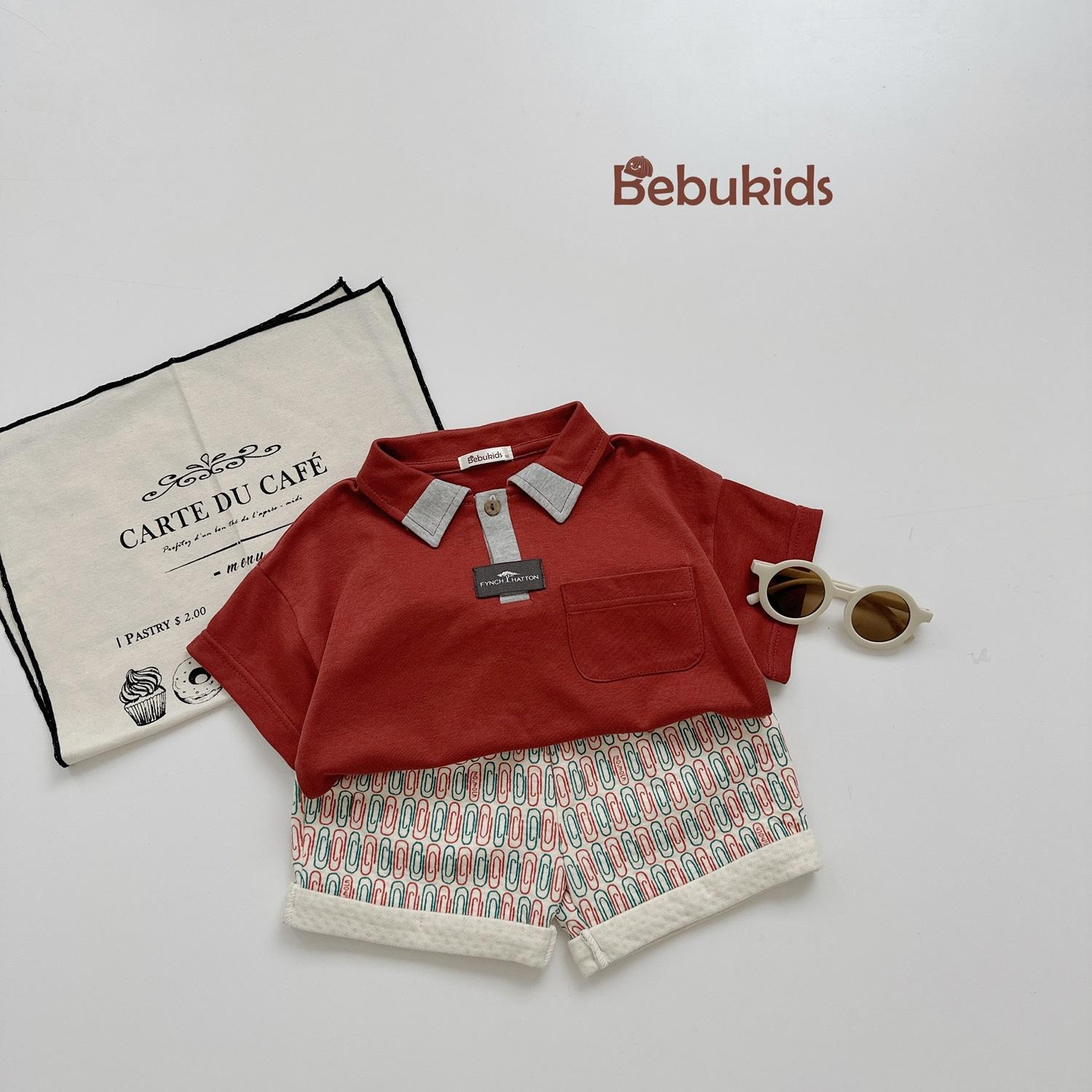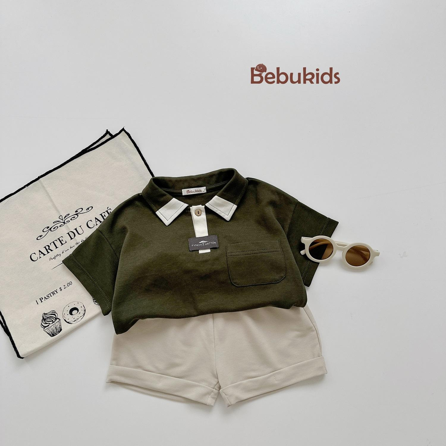 SB2232- bộ polo diễu chỉ nổi túi ngực phối quần gấu, chữ số