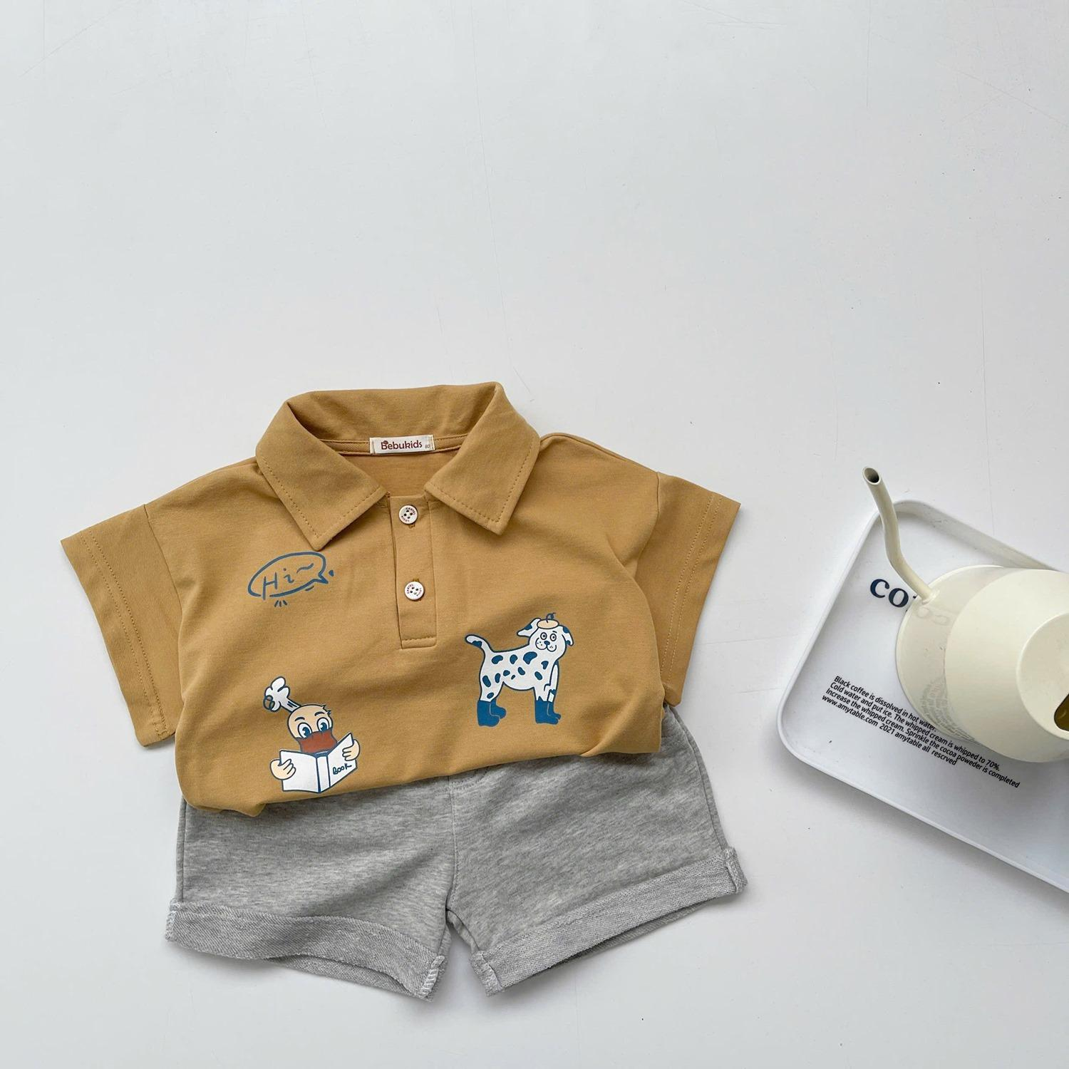 Bộ polo bé trai nẹp thân trước đính cúc in động vật
