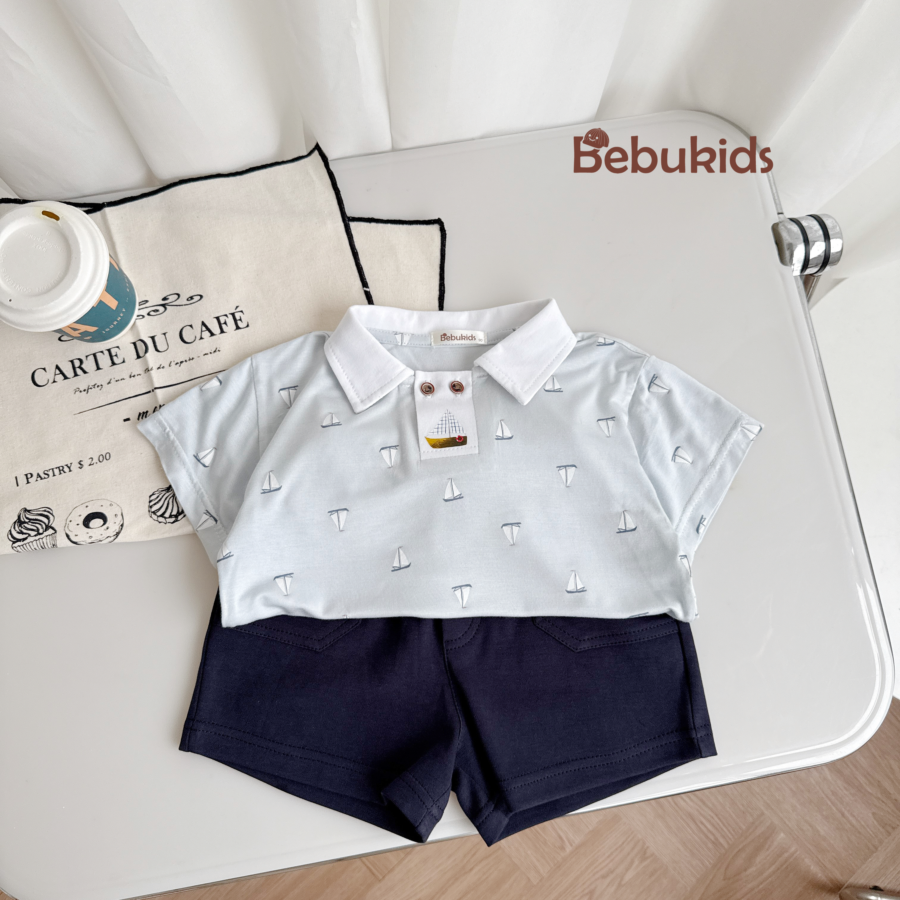 Bộ polo nẹp to họa tiết in thuyền, máy bay