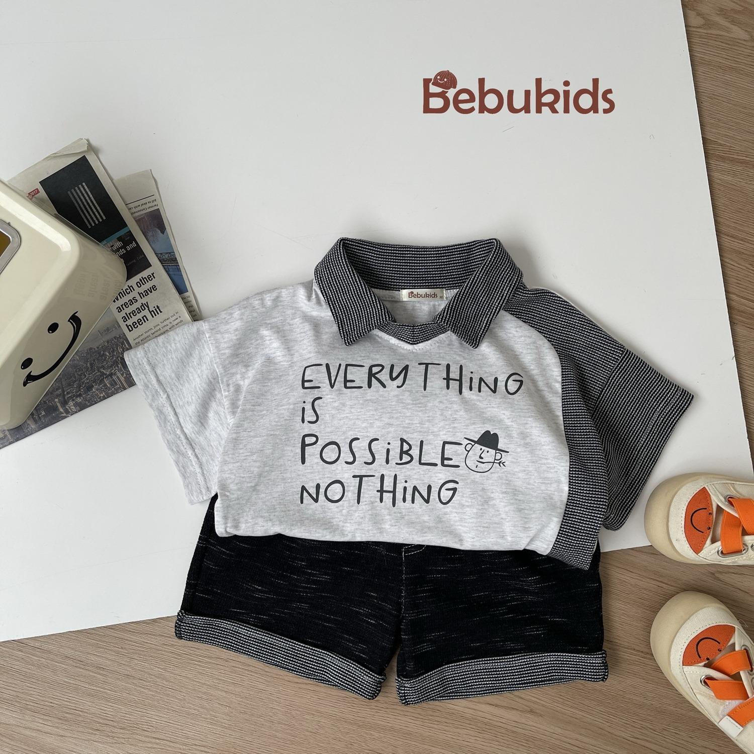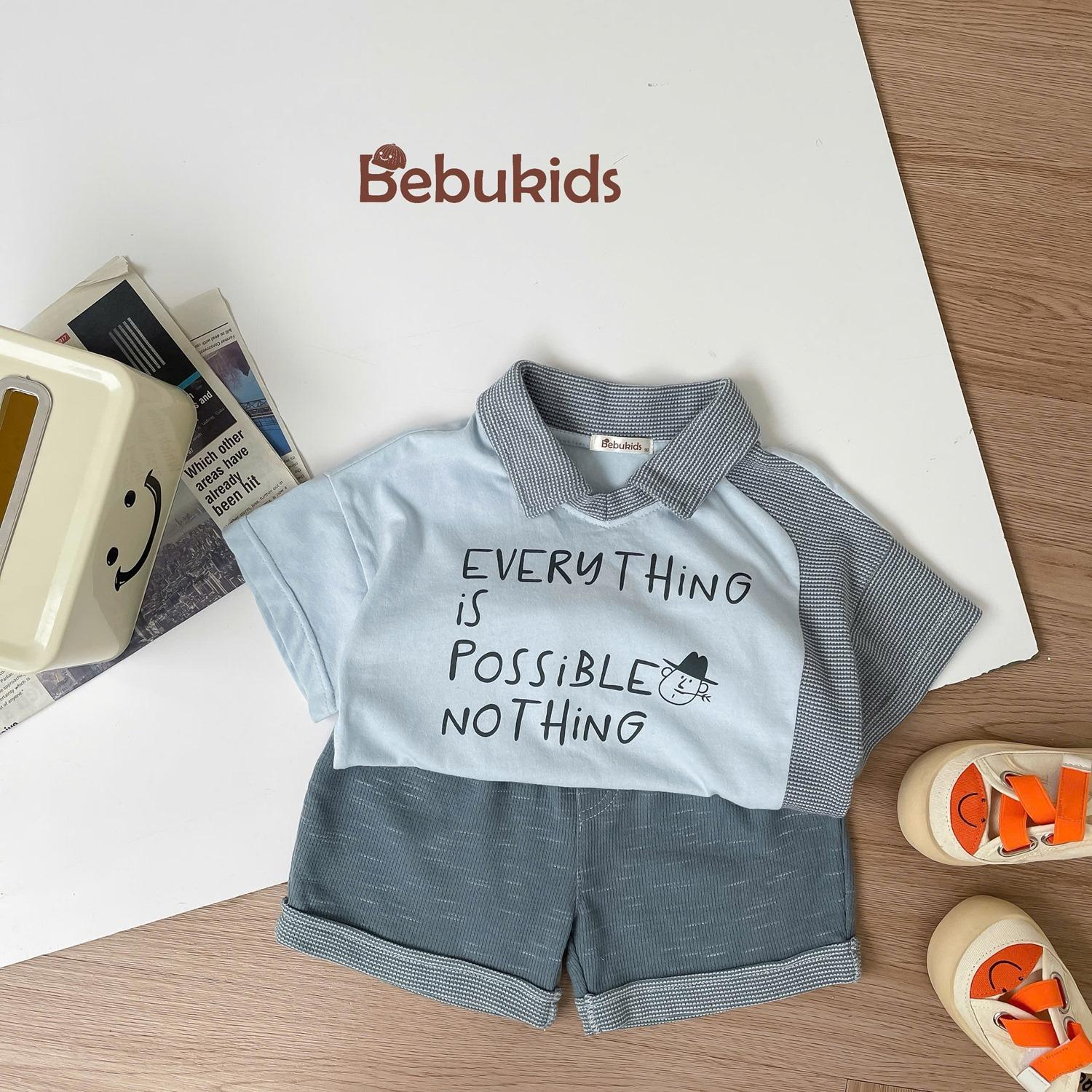 Bộ cộc phối cổ, 1 bên sườn tay áo, in chữ every thing is....
