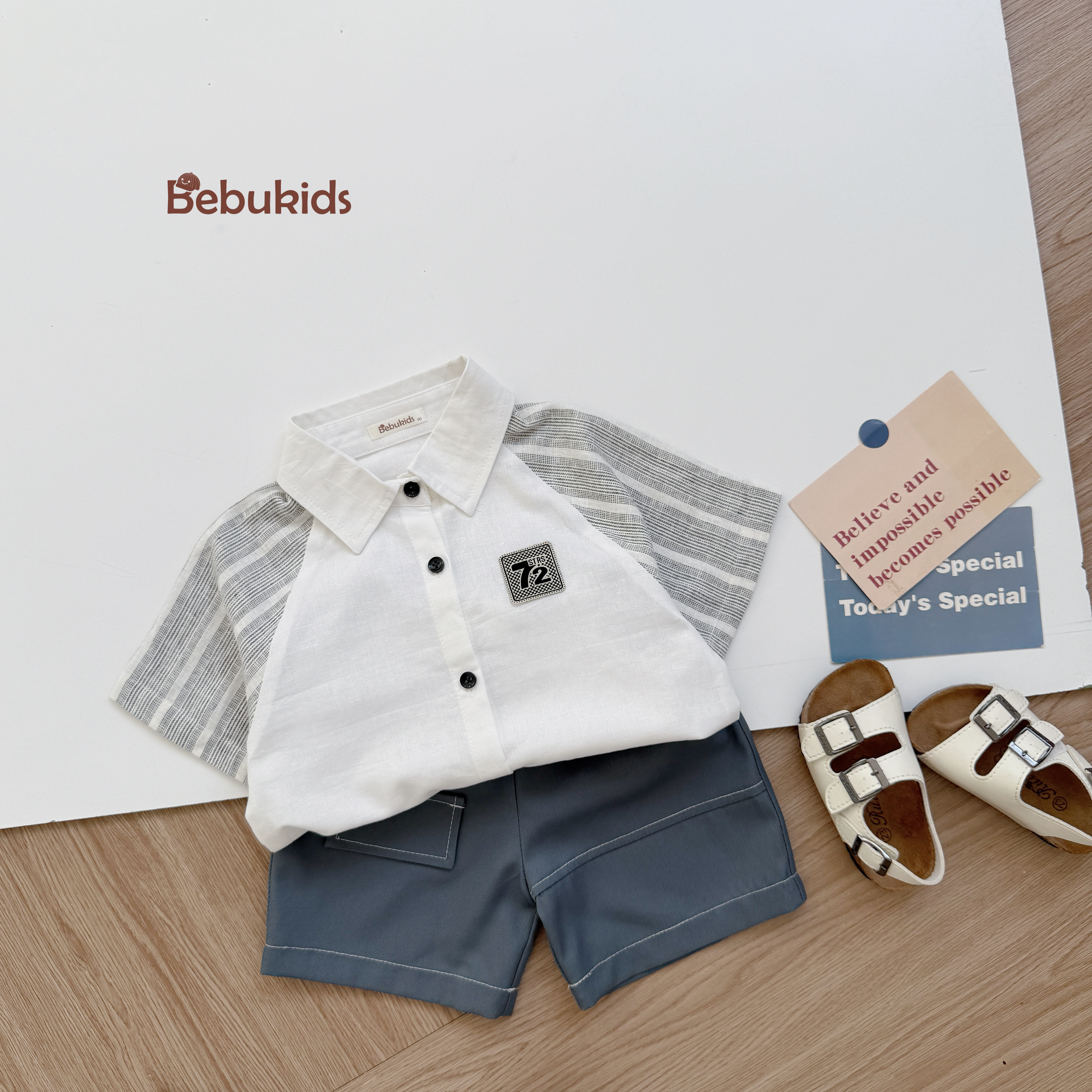 Bộ sơ mi phối tay kẻ logo 72