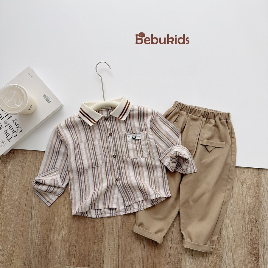 Bộ sơ mi dài tay bé trai phối cổ kẻ