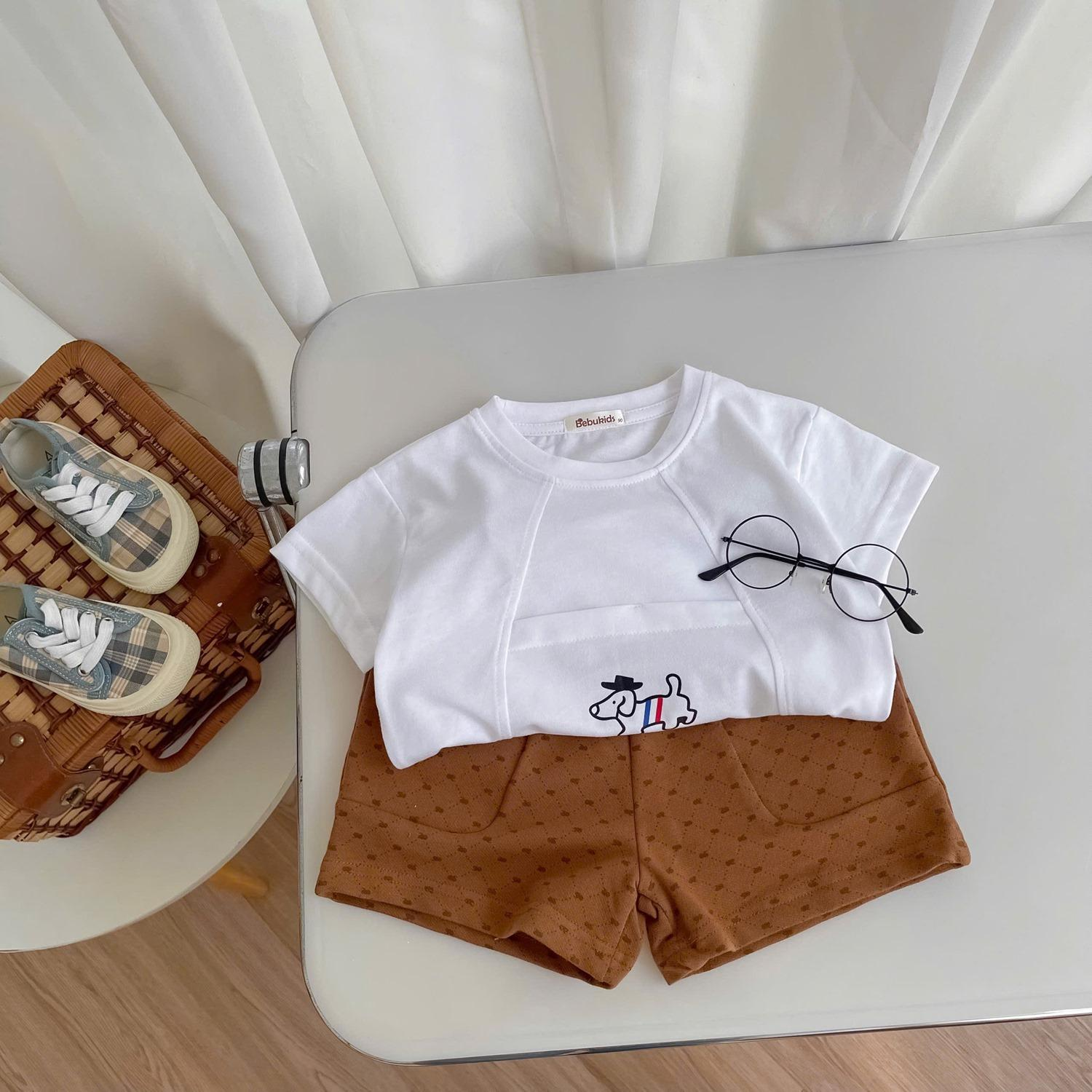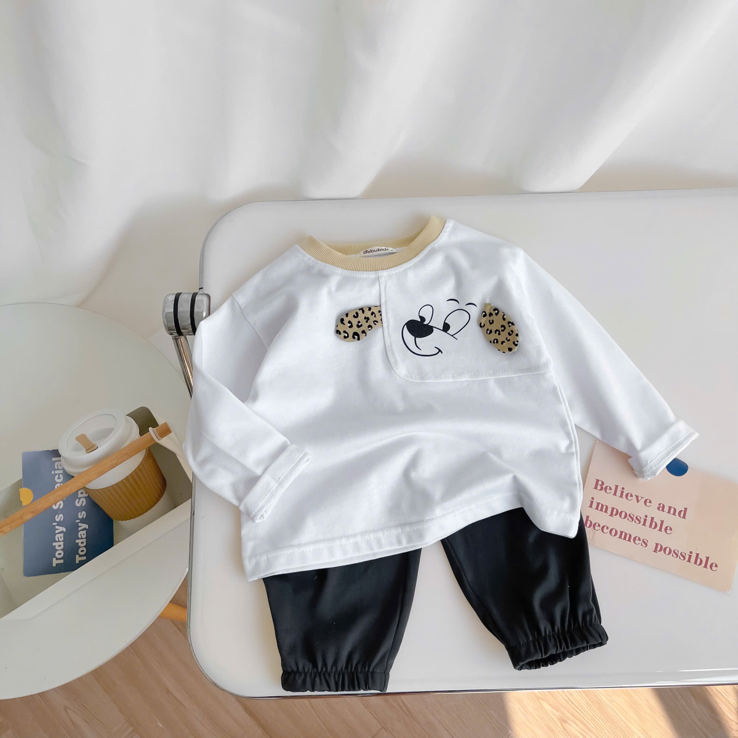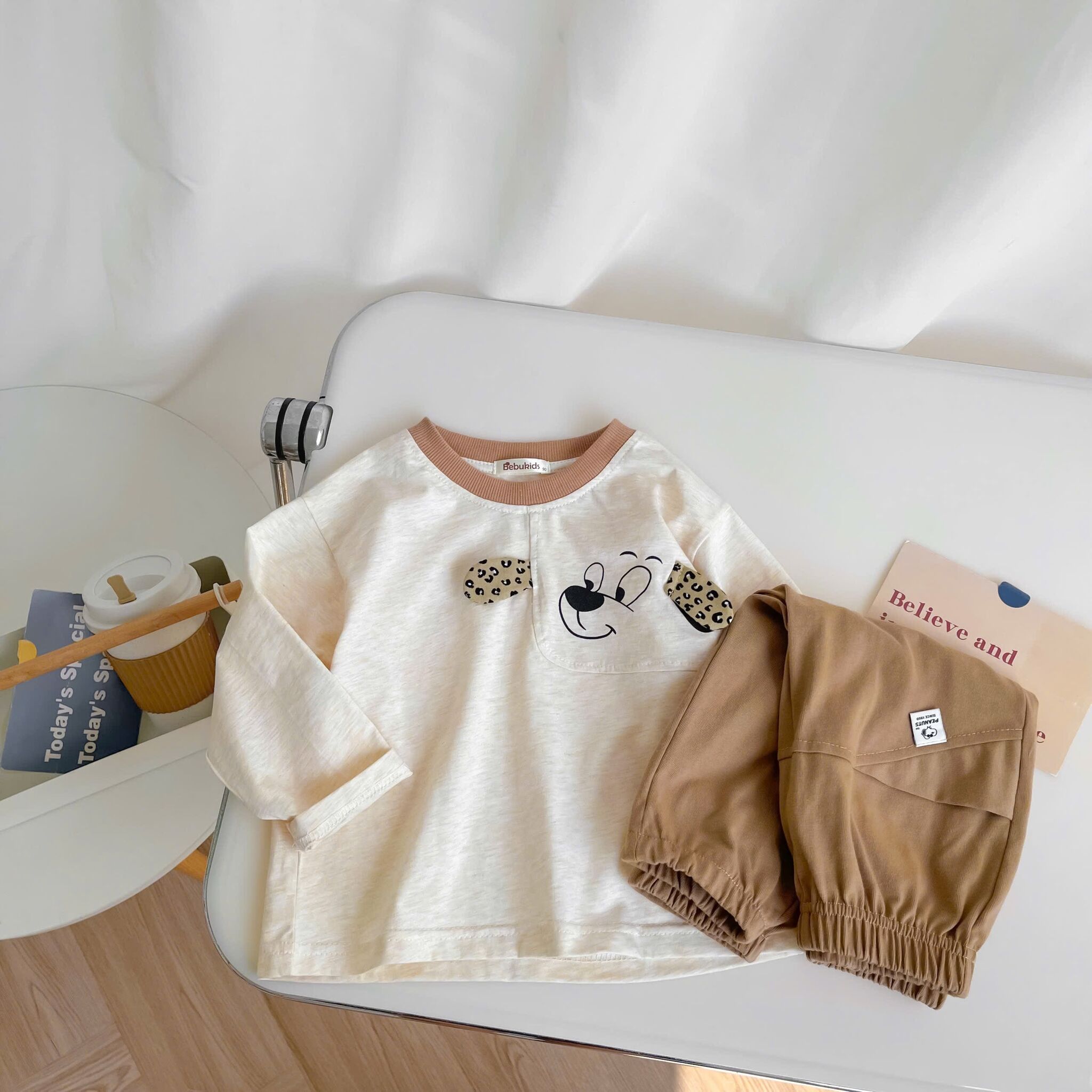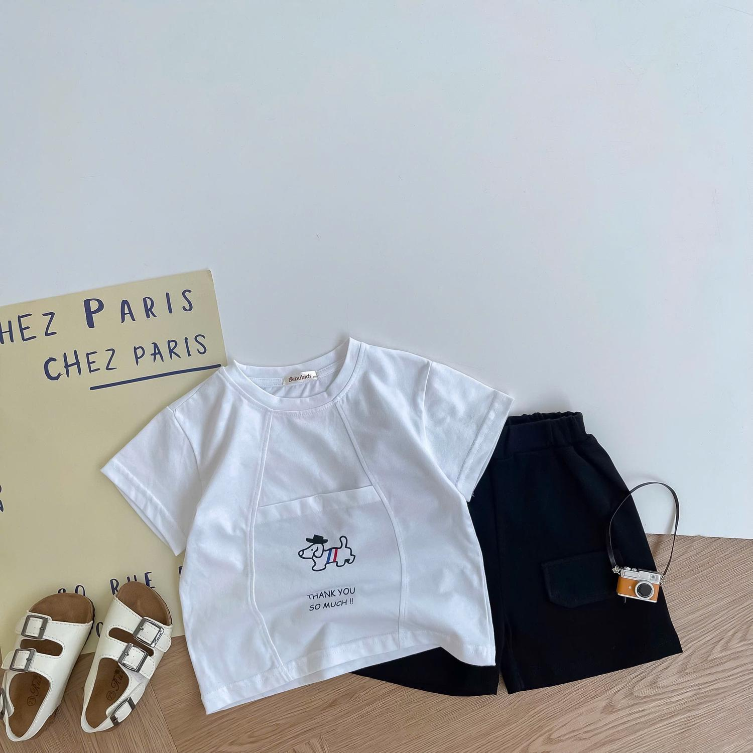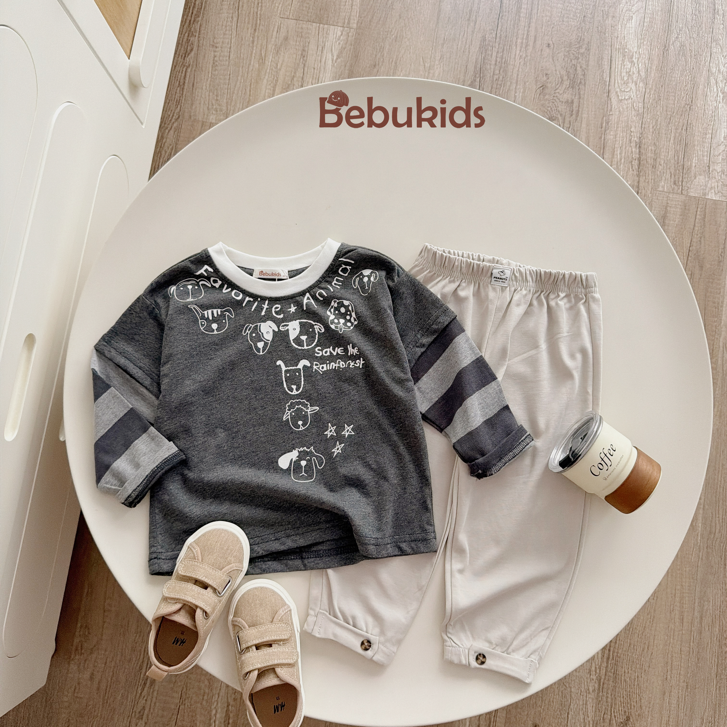 Bộ áo in chó ở nẹp, quần 2 nắp túi