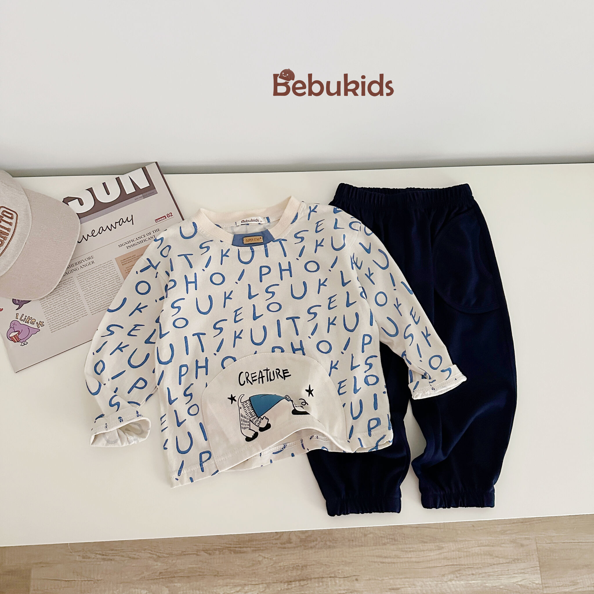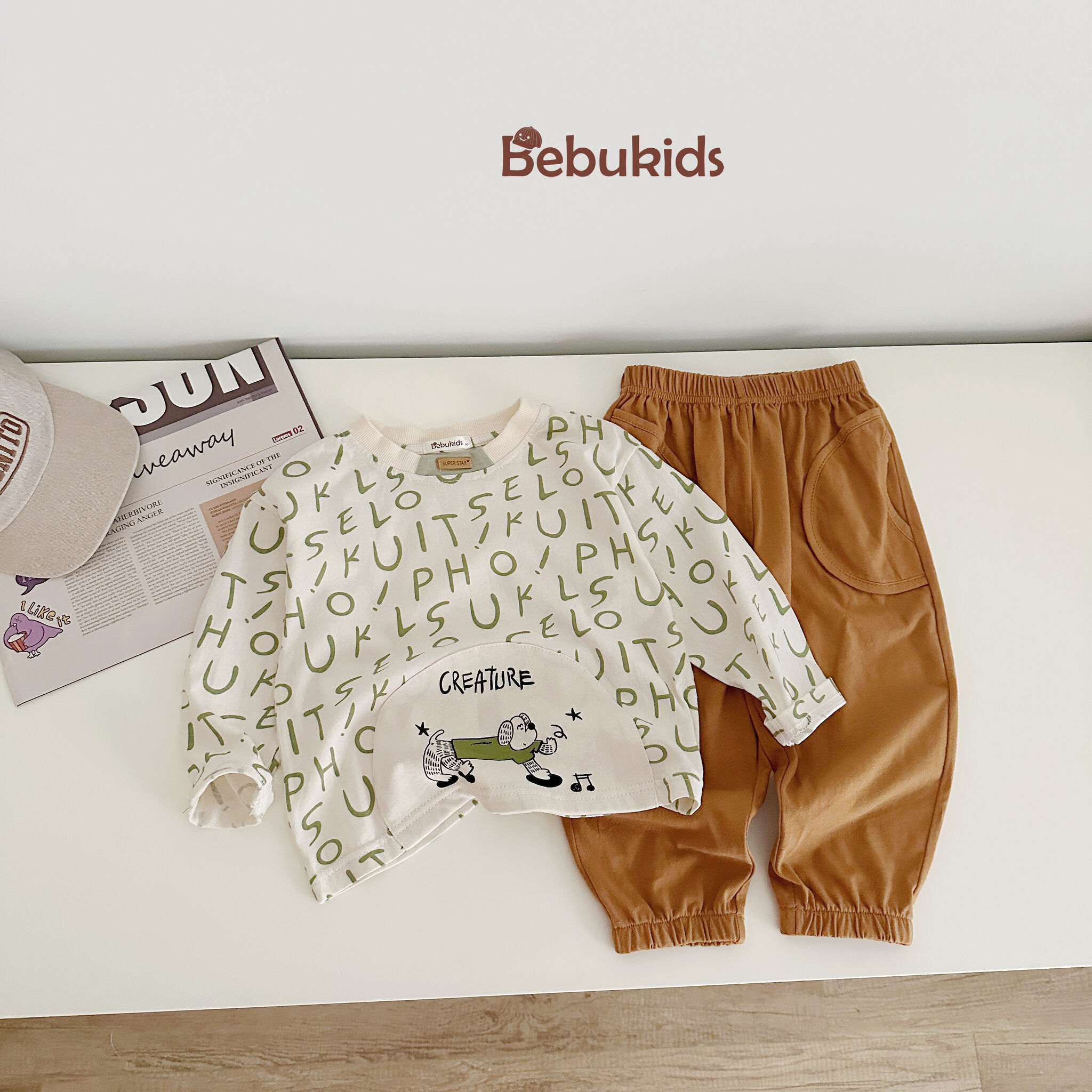 Bộ dài tay bé trai in chữ TTLKID, ngôi nhà
