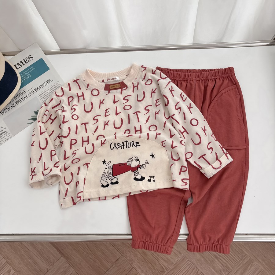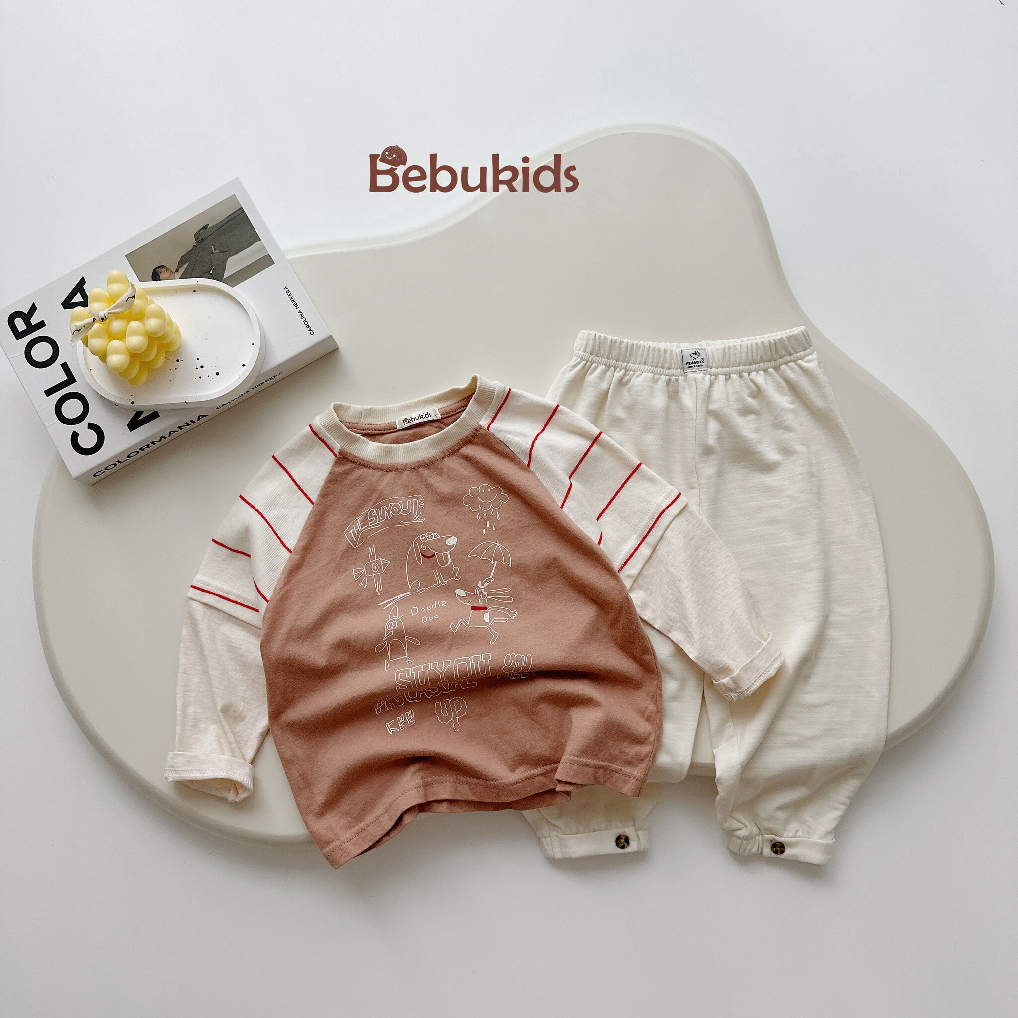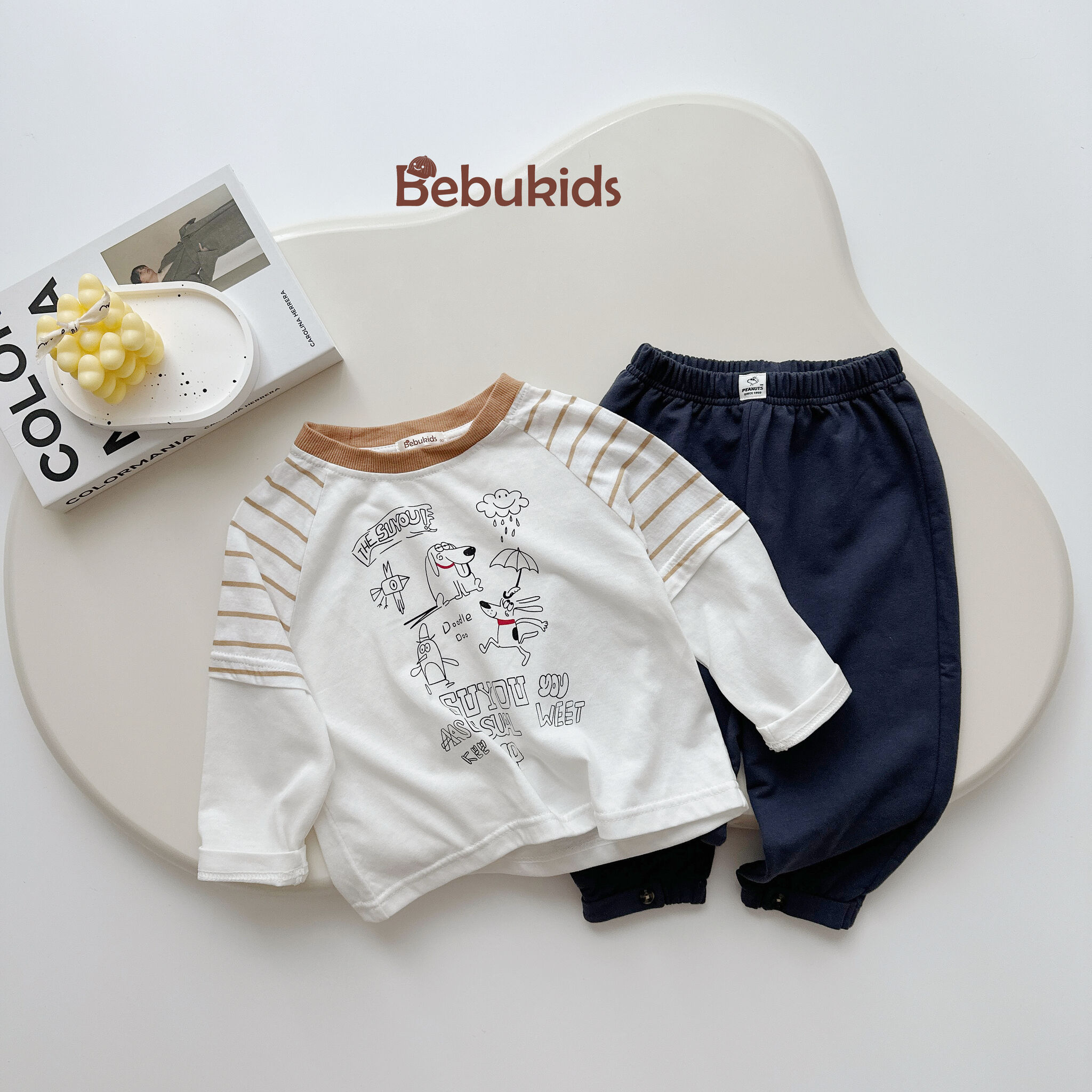 Bộ dài tay bé trai in cún, mây, ô, chữ suyou
