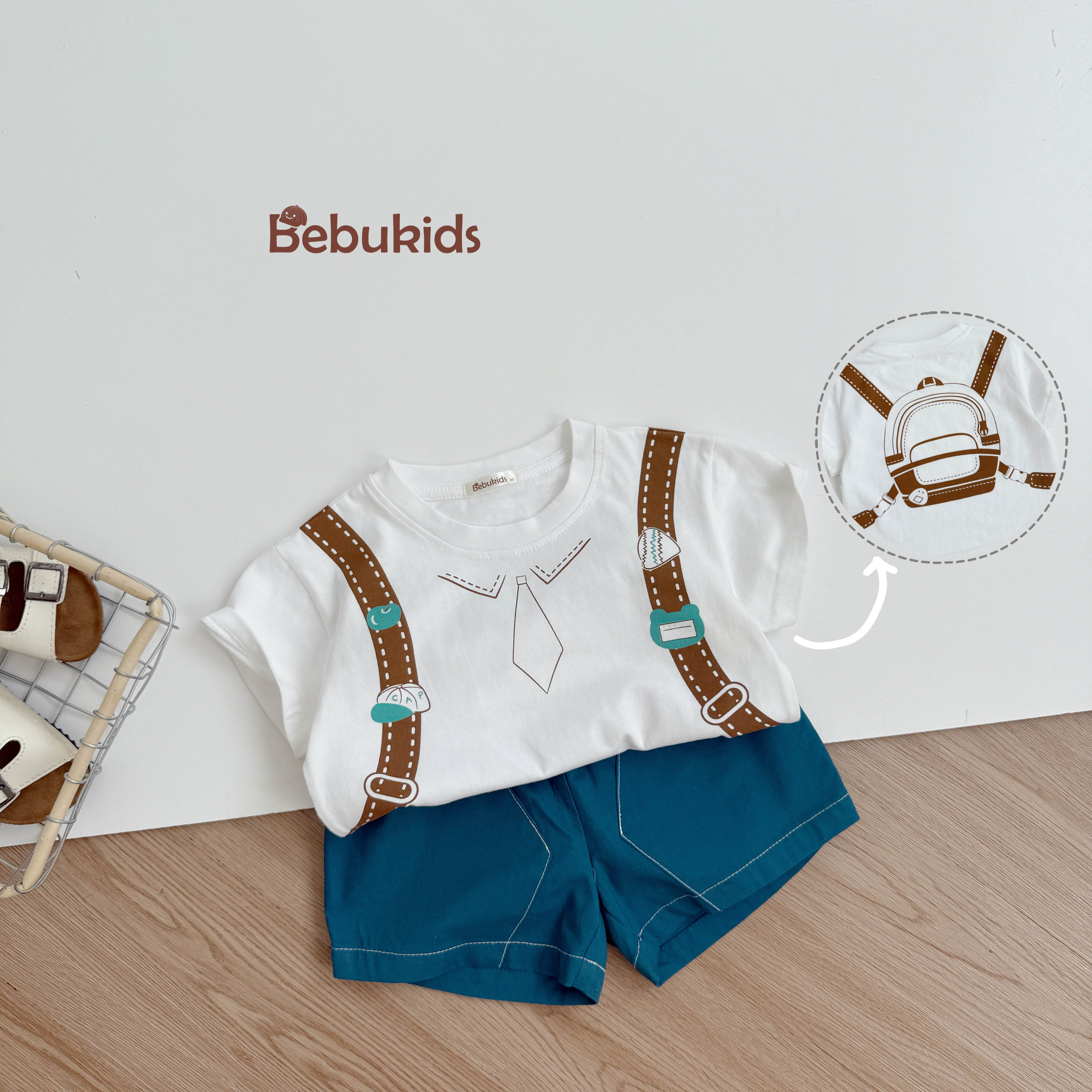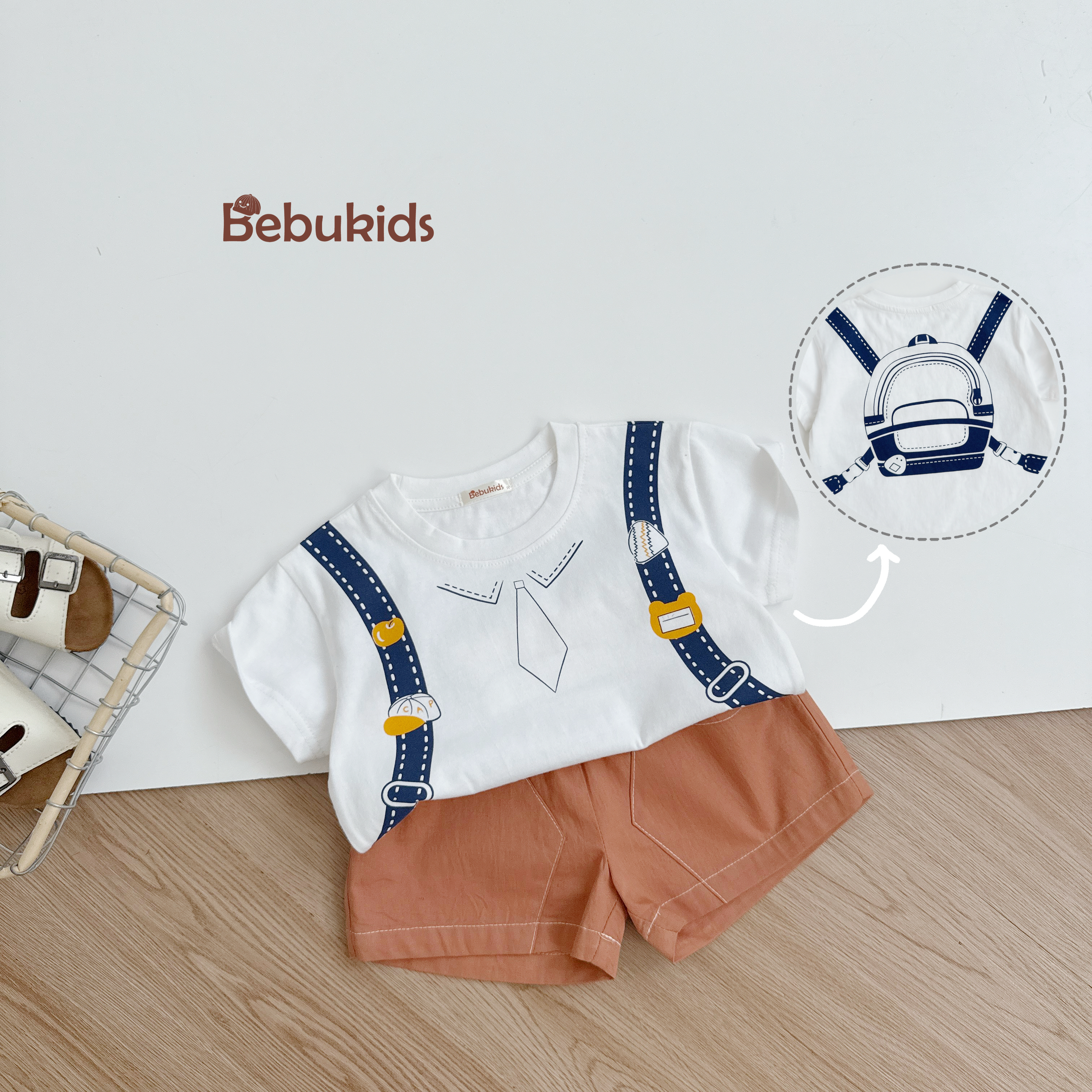 Bộ cộc tay bé trai in chữ where are you going, cún 2 bên vài, lé vai