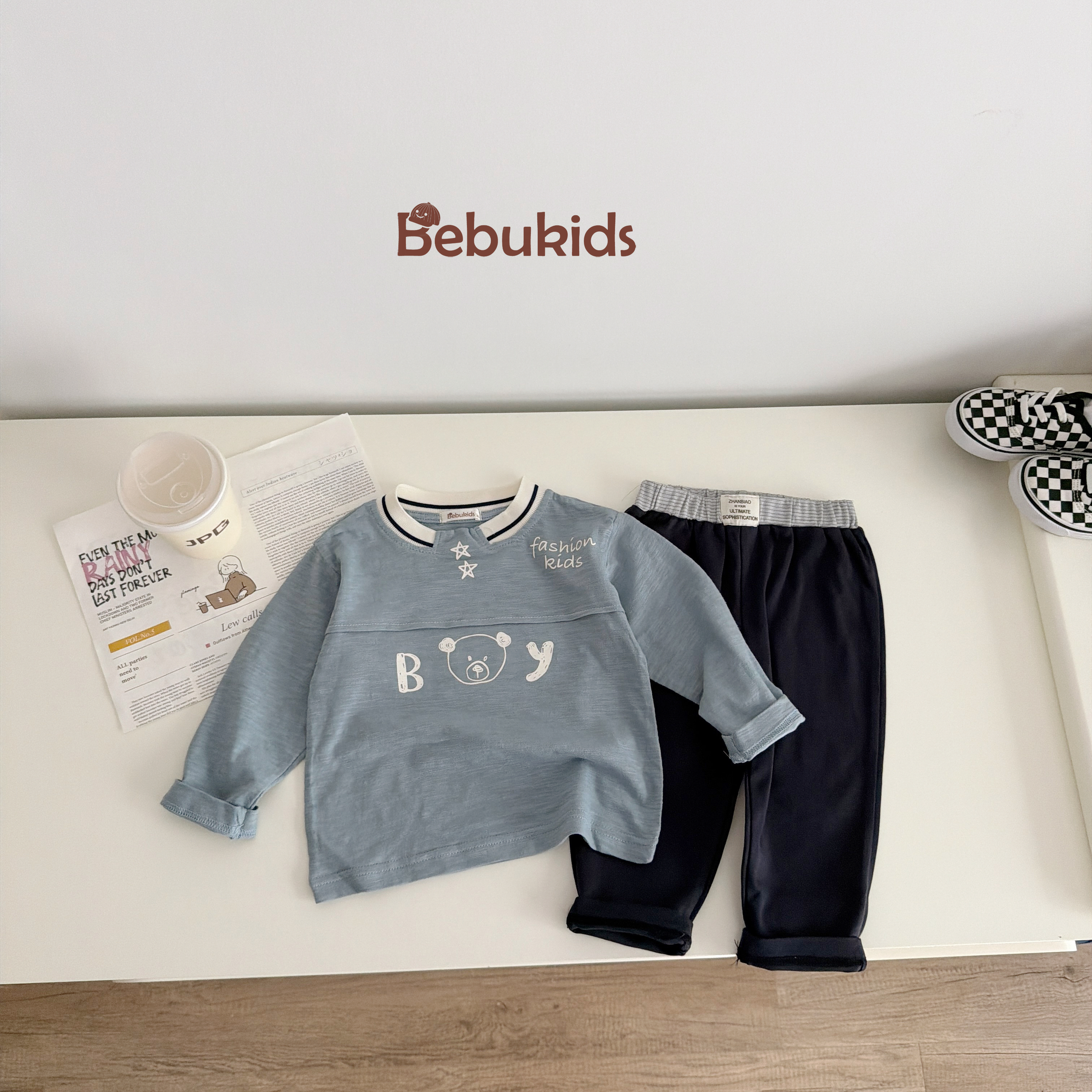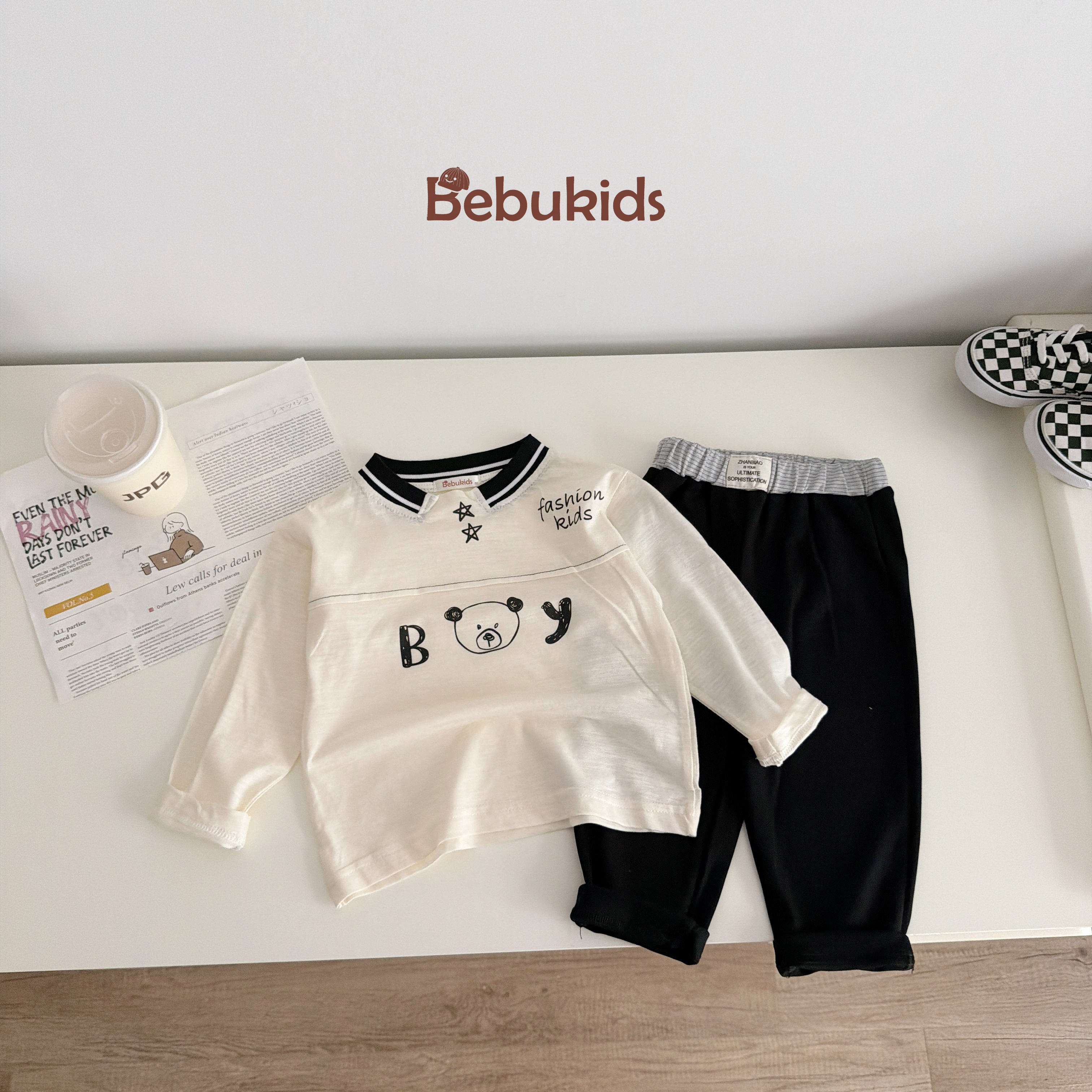 Bộ dài tay bé trai in boy gấu, fashion kids