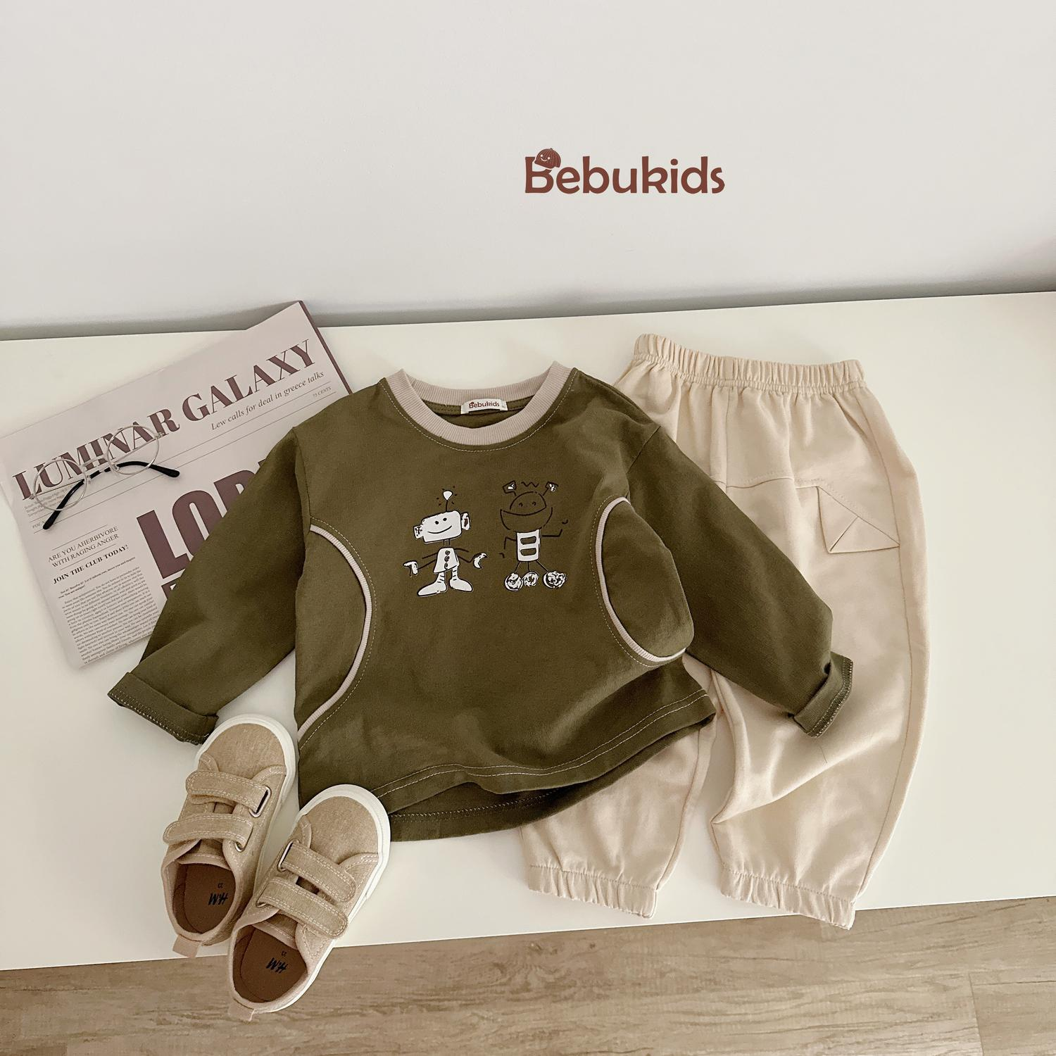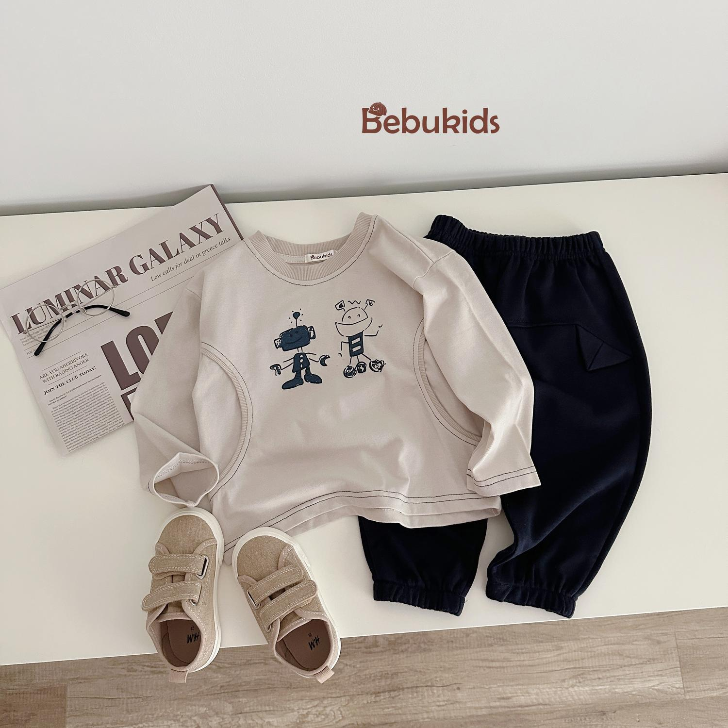 SB2423- bộ dài tay bé trai diễu chỉ nổi in 2 bé robot