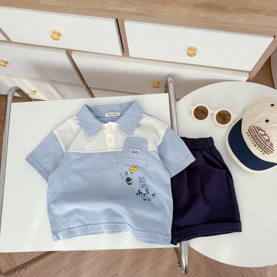 SB2577- bộ cộc polo bé trai túi ngược in mèo kute