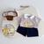 SB2330- bộ cộc tay túi viền dây in chú cũn phối quần karo cún