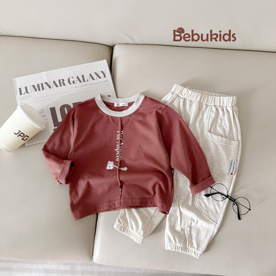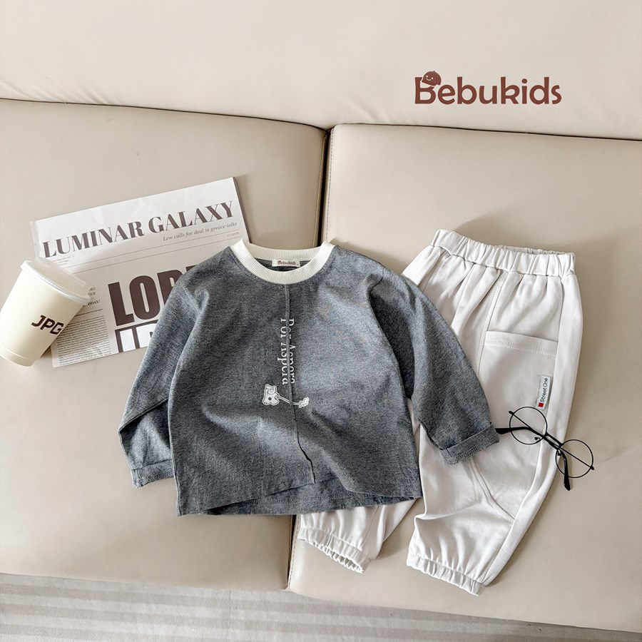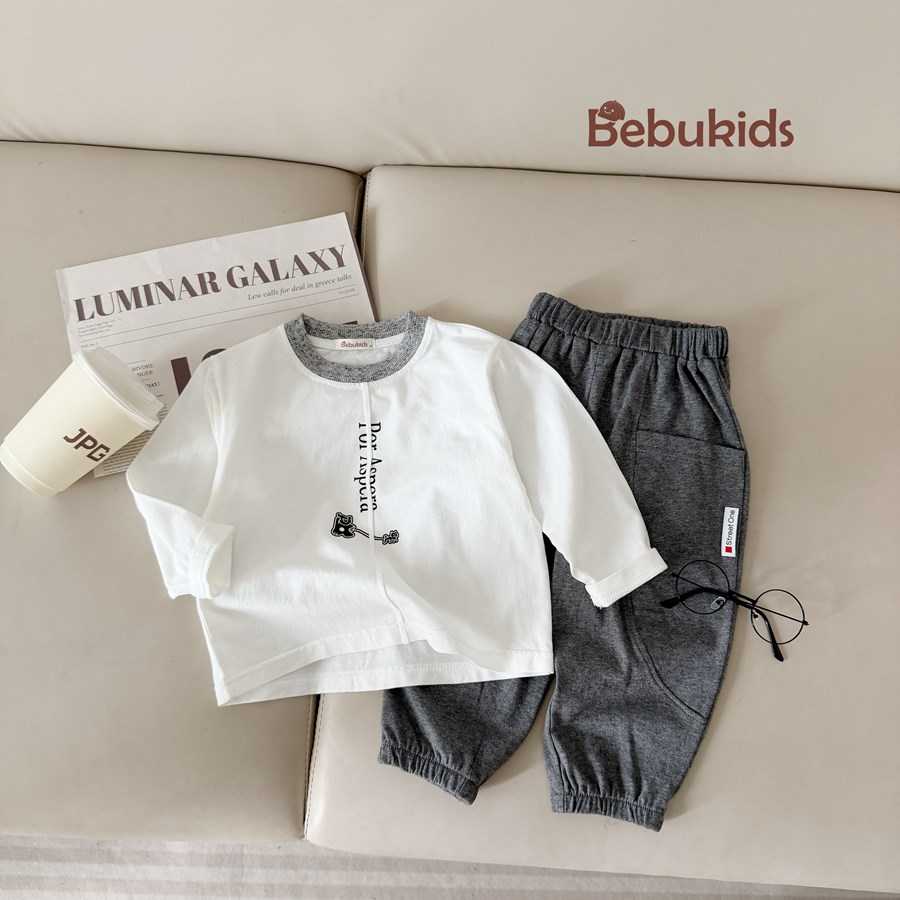 SB2553- bộ dài tay bé trai in chữ dọc ngực