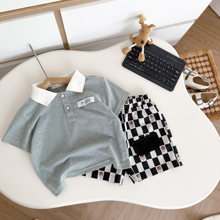 Bộ cộc quần đùi bé trai có cổ