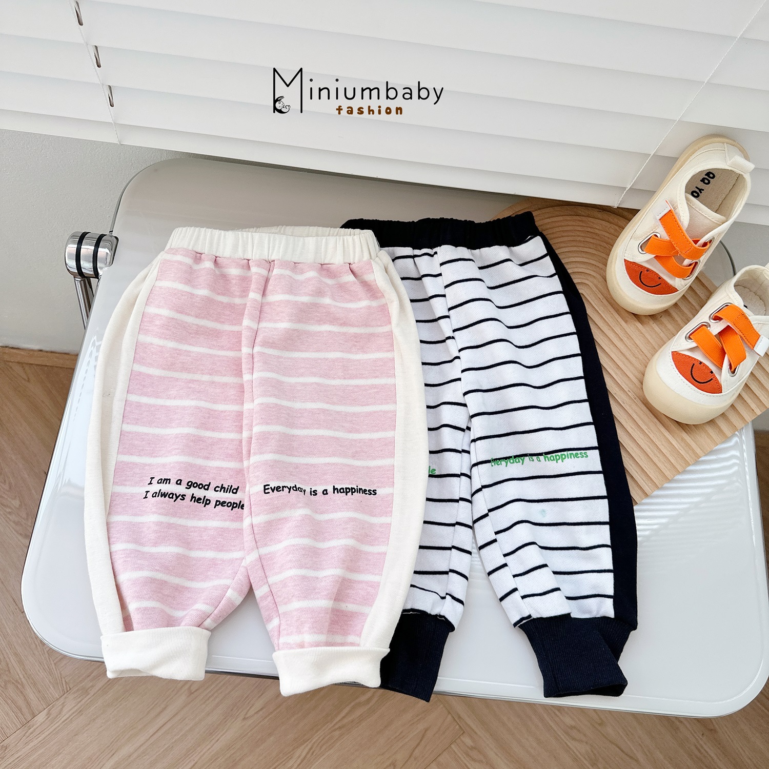 QD1621- quần dài phối kẻ in chữ đen thể thao