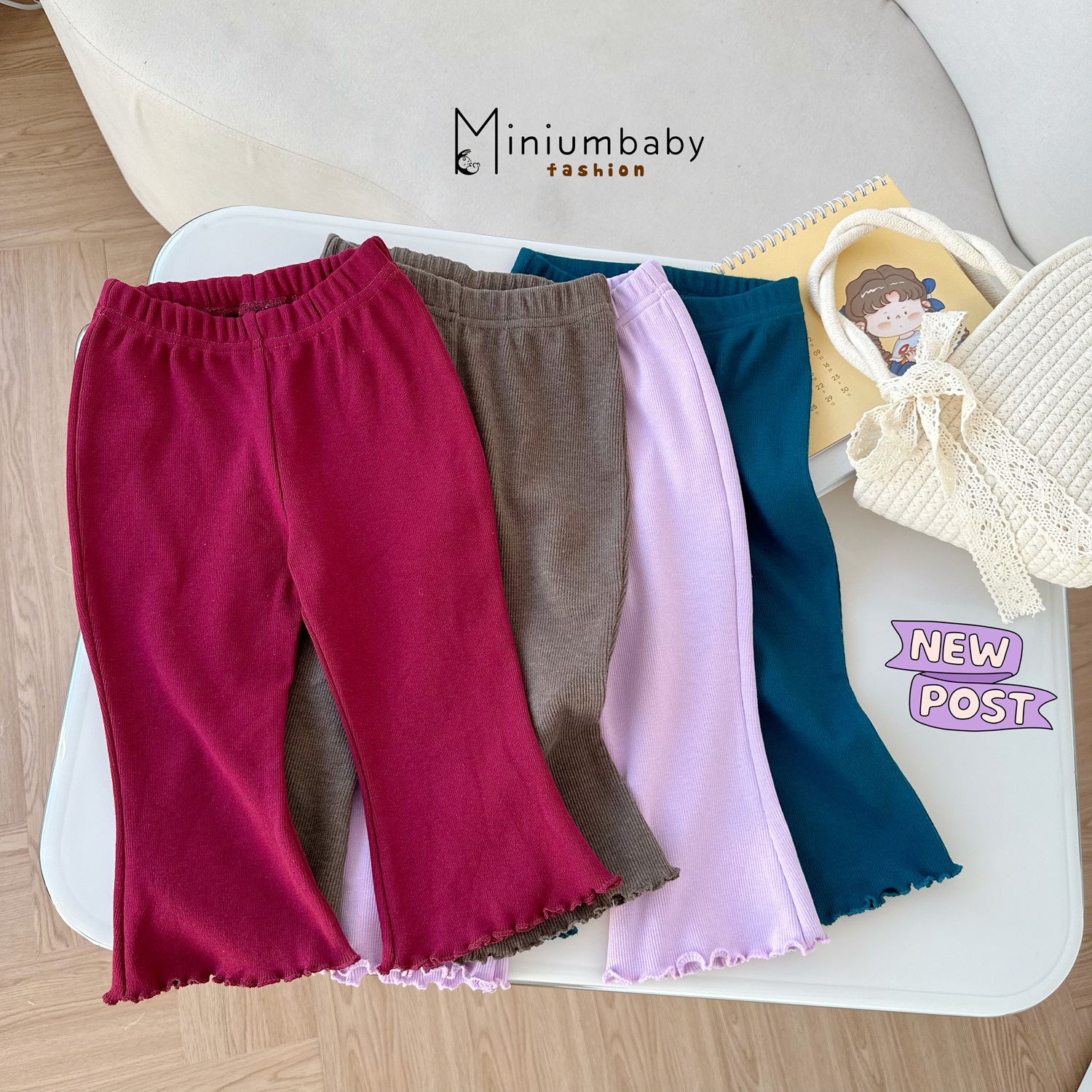 QD2141- quần dài bèo gấu phối ren đính nơ, cúc hoa