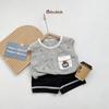 SB1952- bộ sát nách phối kẻ cuucs gỗ túi ngực logo gấu