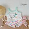 Bộ ba lỗ bé gái đính tai thỏ, quần lé viền màu